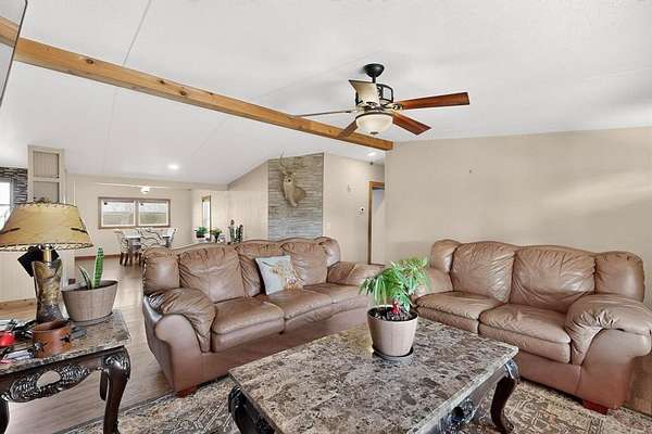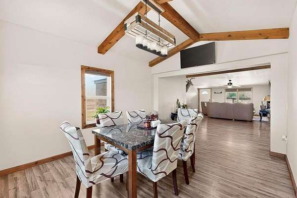 Conveniently located with easy access to Highway 67, this exceptional 5.405 acre property offers a perfect blend of country charm, functionality, and versatility. The well-maintained doublewide manufactured home sits on a solid concrete slab and features an added dining area with scenic countryside views an ideal setting to enjoy peaceful mornings and relaxing evenings. Equestrian enthusiasts will appreciate the inclusion of horse stables, while a dedicated storm shelter provides added peace of mind during severe weather. A standout feature of the property is the expansive 2,125 square foot metal building. This impressive space offers incredible flexibility to suit a variety of needs. With its open layout and inviting stone fireplace, it can easily serve as an event venue, workshop, large-scale storage area, or garage for vehicles, equipment, or recreational toys. The possibilities are truly endless, making this property as practical as it is inviting.