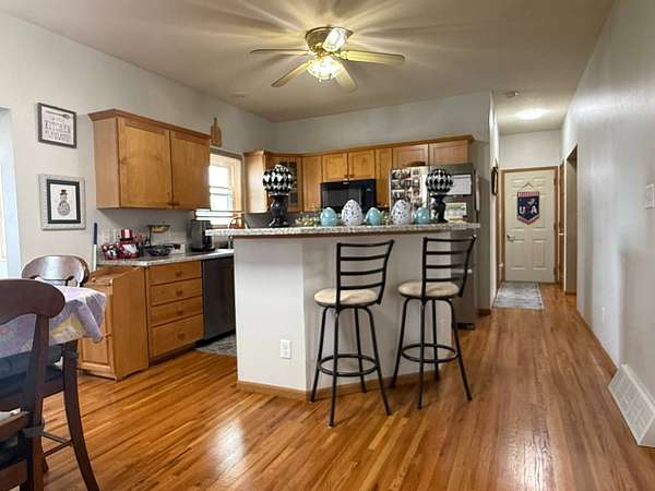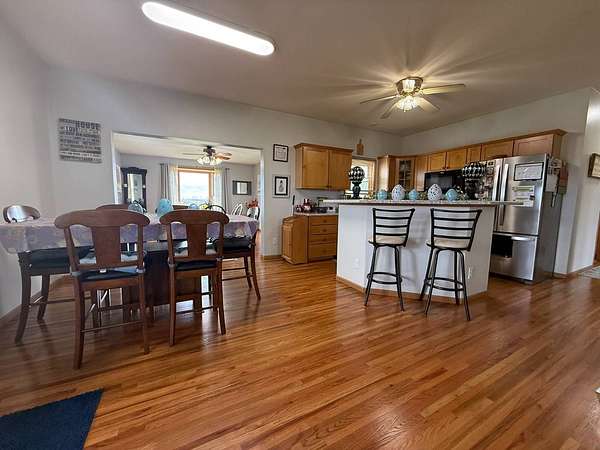 Tucked away just outside of Milo and less than a quarter mile from pavement, this exceptional 20-acre acreage offers the perfect blend of privacy, recreation, and functionality. The rolling landscape features a beautiful mix of timber, pasture, prairie, and hay fields, with established trails ideal for horseback riding, 4-wheelers, hunting or simply enjoying the outdoors. The property is well-equipped for hobby farming or livestock with a 48' x 36' barn featuring built-in stalls, four double sliding doors for easy access, and an insulated office space-perfect for managing your operation or working from home. You'll also find a chicken coop, a charming children's playhouse, and a gated area ready for animals. The meticulously maintained 2-story home offers 2,424 square feet of finished living space above ground, plus an additional 875 finished square feet in the basement. With 3 bedrooms and 4 bathrooms, there's plenty of room to spread out. Two large additional rooms provide flexibility for non-conforming bedrooms, office space, recreation areas, or hobby rooms to fit your needs. Pride of ownership shines throughout, with thoughtful care and updates over the years. For added peace of mind, the home is equipped with a whole-house propane generator and a tornado shelter built beneath the wrap around porch. Whether you're looking for a hobby farm, recreational or hunting retreat, or a private place to call home, this property delivers space, versatility, and country living at its best-all within easy reach of town.