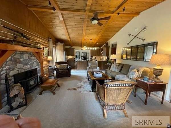 Situated in the Salmon River corridor, between Salmon and Challis. Sit off your front deck and watch the Big Horn sheep on the cliff above the river, soaring Osprey and majestic eagles! The original log home has had 2 additions, the interior has been tastefully remodeled. Views from every window in this 5 bedroom, 3 bath home. Main level features open floor plan, vaulted ceilings & picture windows looking over the Salmon River & surrounding mountains. Custom kitchen with granite counter tops, hardwood cabinets, stainless appliances & composite wood flooring. Formal dining area has a picture window looking up Rattlesnake Creek & a perfect view for storm watching. Living room features a custom river rock & timber fireplace surround & an access to the covered front deck. Ensuite with tile floor and granite counter tops, 2 guest bedrooms, house bath with large walk-in shower & granite counters, laundry & office are all easily accessible on the main level. Upper level includes 2 bedrooms, full bath & spacious family room area. Attached 2-car garage is insulated a has loads of storage. Home to elk, deer, moose & more right out your back door in big game unit 29. BLM on one side & for the "sharp-shooter" there is a 25-yard pistol range & a 100-yard rifle range with storage shed.