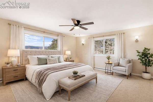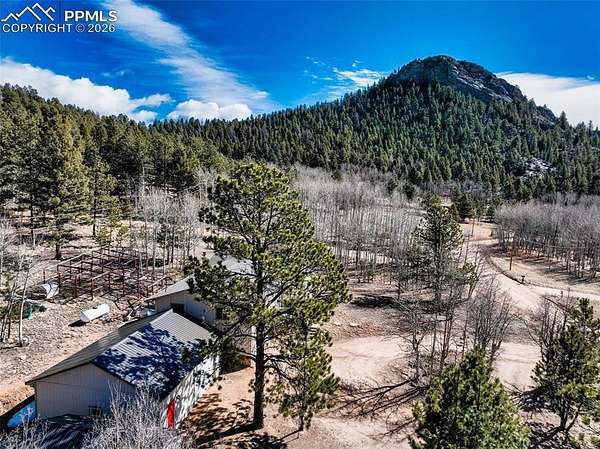 Welcome to beautiful Lake George-where wide-open skies and iconic mountain views frame a property that truly delivers on space and functionality. This 3-bedroom, 3-bath home sits on 5.05 level, usable acres with stunning views of Pikes Peak and Crystal Peak right from your front deck. Inside, you'll find a spacious kitchen made for gathering, fresh interior and exterior paint, newly stained decking, and tasteful lighting updates that give the home a clean, move-in-ready feel while still leaving room for your personal touch. The primary suite offers a comfortable retreat with a generous walk-in closet and space to unwind. The incredible 25x30 heated detached garage/shop built in 2022. With durable epoxy floors and ample room for vehicles, equipment, projects, or toys, this space is ideal for anyone who needs a serious workshop or hobby haven. Whether you're into woodworking, mechanics, or storage for mountain gear this shop is ready to perform year-round. The 10x20 shed is fully office-ready-perfect for a home-based work schedule, private studio, client meetings, or creative space separate from the main house. Add in the attached 2-car garage for everyday convenience and a dog run just off the laundry room, and you've got a property that balances mountain lifestyle with practical living. Level acreage, iconic views, and outbuildings that truly set this property apart-this is Colorado mountain living with the flexibility and function today's buyers are looking for.