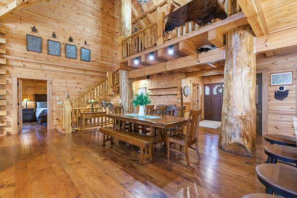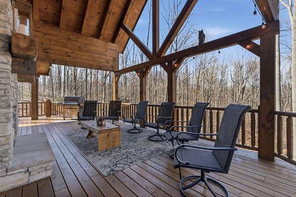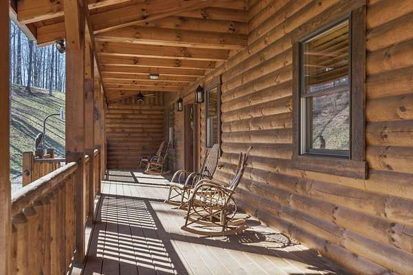 This extraordinary retreat offers a RARE opportunity to own a getaway on 3.17acres adjacent to the 9,800 protected acres of Hocking State Forest! This three-level LA Horn built luxury log cabin was custom designed for both relaxation and entertaining, featuring 5 bedrooms + ensuite baths, in addition to a loft area, to comfortably accommodate 20+ guests for large family gatherings, retreats, or short-term rental investment! The home's stunning two-story great room is filled with natural light and anchored by a dramatic sense of scale with the stacked stone fireplace. The gourmet kitchen features Kitchenaid appliances, a Reverse Osmosis water purification system, built in wine/beverage refrigerator, double convection oven, and butler's pantry with additional space for appliances. The open layout and walkout deck is ideal for hosting and catering to large groups. Step outside to two levels of expansive wraparound porches overlooking the private wooded landscape. Outdoor amenities elevate the experience with a saltwater hot tub, outdoor fireplace, fire pit, basketball recreation area, & sweeping views of the surrounding forest. The home features two levels of garage bays that provide potential to be converted to additional living or recreation space to maximize both lifestyle and investment opportunity. The property backs up to the Purple Trail for horseback riding, in addition to recreation of Hocking State Forest- providing owners and guests nearby access to hiking trails, swimming, camping, hunting, & fishing. Nearby attractions just minutes away include Rock House, Ash Cave, Old Man's Cave, Cantwell Cliffs and Lake Logan. In addition to no HOA, the home has Starlink high speed internet, a private well, and all electric- so minimal monthly bills to worry about! Whether you're seeking a luxury personal retreat, high-performing short-term rental, or both, this one-of-a-kind property offers the space and location to be unforgettable!