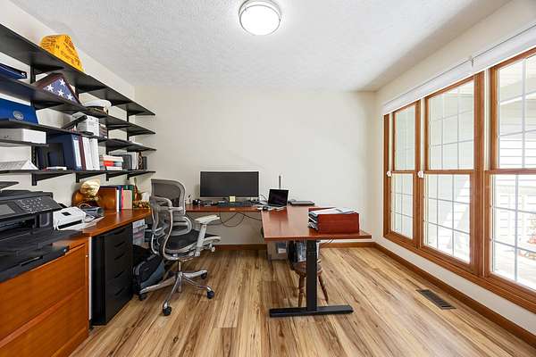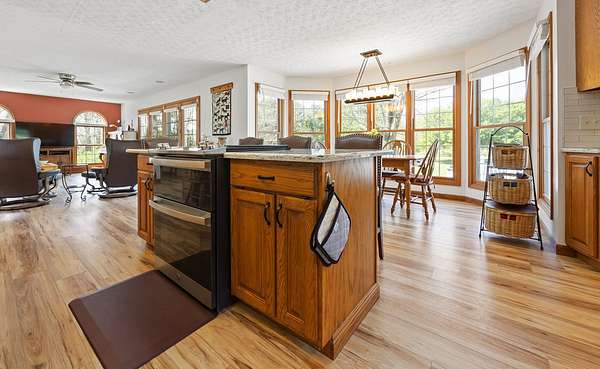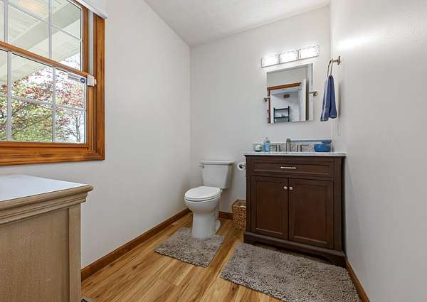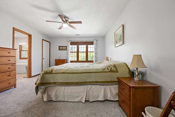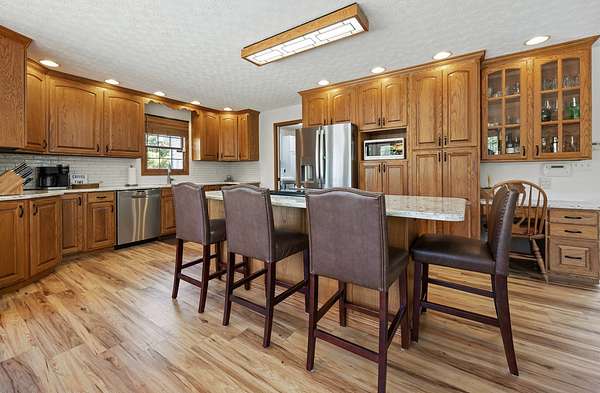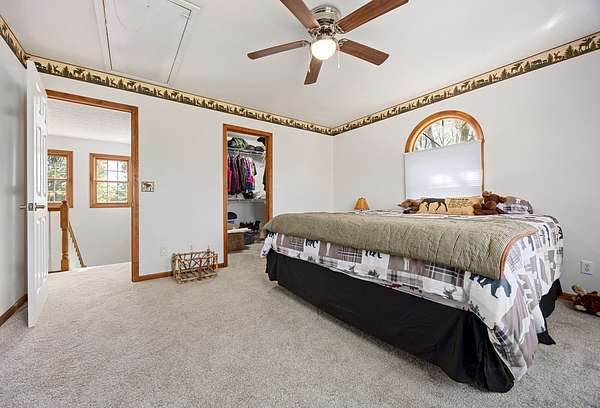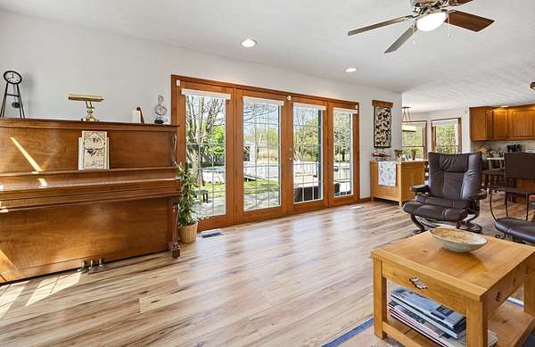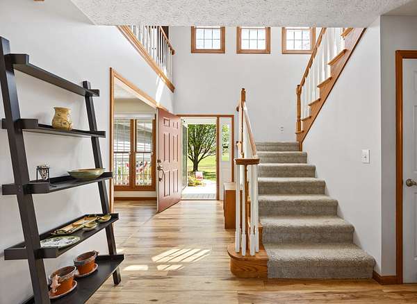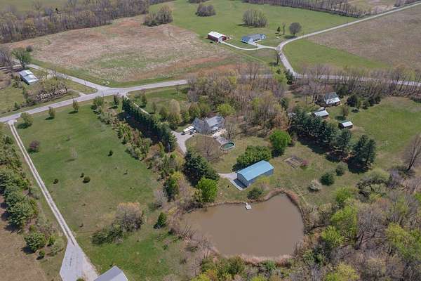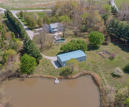 Modern Two-Story Retreat on 5 Acres with Pond, Pool & Exceptional Outbuilding! Experience the perfect blend of modern style and country living with this beautifully updated two-story home situated on 5 scenic acres. Designed for both comfort and entertaining, this property offers a rare combination of amenities including a stocked pond, above- ground pool with patio and hot tub, and an impressive 30x60 finished pole building complete with bathroom and overhead doors. Step inside to an inviting open floor plan featuring a spacious living room, dining area, and a stunning updated kitchen. The kitchen showcases quartz countertops, tile backsplash, custom wood cabinetry with premium features, a center island with seating, and updated appliances-ideal for everyday living and gatherings alike. The adjoining dining area provides a seamless flow for entertaining. The main floor also includes a private office/den, a renovated powder room, and a well-equipped laundry room with new cabinetry and a convenient hall locker/bench area. The spacious master suite offers a relaxing retreat with a walk-in closet and a beautifully renovated bathroom featuring a spa tub and ceramic tile walk-in shower. Two additional bedrooms provide comfortable accommodations, including a large guest bedroom with an oversized walk-in closet, along with a second fully renovated bathroom. On the second floor, a loft overlooks the downstairs area, creating a cozy nook perfect for reading. The basement adds even more living space with a cozy family room and a large storage area. Numerous updates throughout the home include new furnace 2025, newer roof and AC unit, fresh interior paint, updated lighting, ceiling fans, fixtures, luxury vinyl tile flooring throughout most of the home, and newer carpeting (full list available). Outdoor living is just as impressive with a concrete patio, covered front porch with wraparound detail, and scenic views in every direction-perfect for relaxing or hosting guests. In addition to the oversized 2-car attached garage, the standout feature is the fully finished 30x60 pole building includes a 14' high foot door on one bay and a 30-amp RV hookup. The building offers endless possibilities for hobbies, storage, or workspace. Enjoy a fenced garden area designed with the garden enthusiast in mind. Experience peaceful rural living with all the modern updates-this exceptional property truly has it