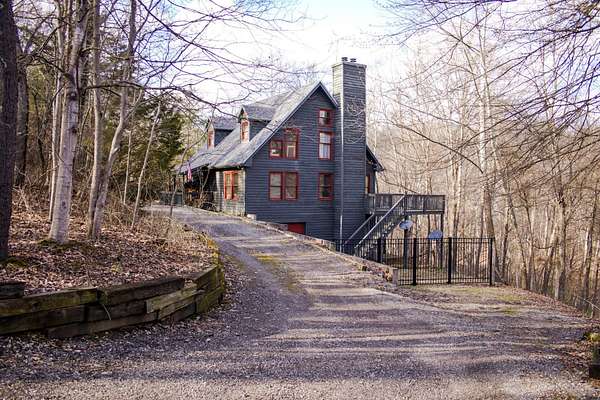 Specious Cape Cod Farmhouse Charm, Resort Lifestyle! Step into a comfortable design surrounded by a private resort setting and amenities, nestled so near the famous Hocking Hills of Southeast Ohio! Your tour starts along a wooded, nicely private no-outlet lane to a wide convenient circular driveway, opening up to the skies framing the two-plus acres belonging to ''Rabbit Run.'' Drive to the front door, or pull in the adjacent two-car garage and side walkway to the porch. The residence includes a generous amount of outdoor living spots, including the covered front porch, lower level patio, and extensive main level rear decking with covered as well as ample open spaces. The front porch opens to the large kitchen with plenty of traditional wood cabinetry and warm wood flooring that flows in to the stunning great room with dramatic two-story views to the upper half-level multifunctional sleeping areas. The main level also offers multiple windows and two walkout doors to the rear deck, along with a master suite down the hall from the kitchen. You'll find full baths on all three levels of the home, including the finished lower level. The lower also provides laundry space for the included washer and dryer, plus a third bedroom with patio walkout door. *SqFt includes finished lower level.* The lower also features direct access to the one-car garage with lots of built-in wooden storage shelving. And don't forget to ask for a tour of the lakes community amenities in Hide-A-Way Hills Club, such as boating & fishing lakes, beach, golf course, clubhouse and lodge, ATV trails, playground & basketball court, tennis & pickleball courts, swimming pool, Chapel in the Pines, organic garden, 24-hour security and more!