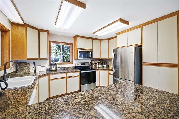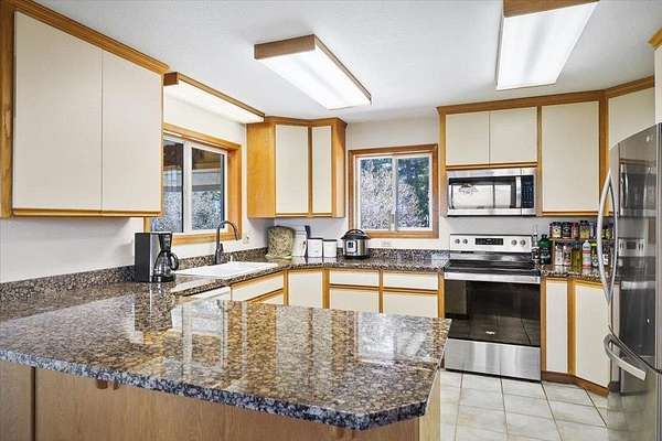 - Dishwasher, Disposal, Dryer, Free-Standing Range, Hard Surface Counters, Microwave, Refrigerator, Washer, Water Softener