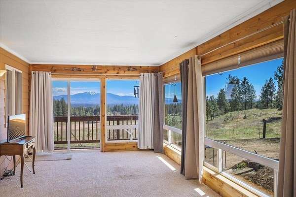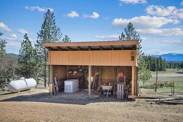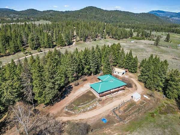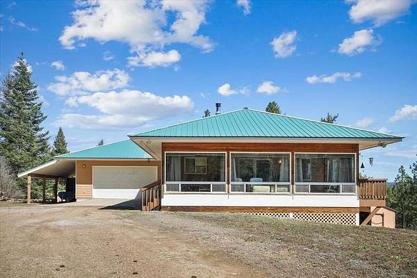AMAZING UNOBSTRUCTED VIEWS - Rare 20-acre forest retreat just 15 minutes north of Deer Park! This meticulously maintained 3,300+ sq. ft. rancher by J. Baker Construction offers ultimate privacy and sophisticated self-sufficiency. The main floor features a gourmet kitchen with granite countertops, birch cabinetry, and an eating bar, flowing into a formal dining area and a massive sunroom. The primary suite boasts deck access, double sinks, and a walk-in closet. The fully finished daylight walk-out basement adds 2+ bedrooms and cozy warmth from 1 of 2 wood stoves. Superior infrastructure includes a Geothermal heating system, R-60 attic insulation, a whole-house Generac generator, and a 2,000-gallon water holding tank. Outside, enjoy a 30x40 powered shop w/ lean-to and deer blind. Producing Fruit & Walnut Tree! With 3,200 new pine trees maintaining the Designated Forest tax class, this is an efficient, low-tax sanctuary just minutes from the 1,600-acre Rustlers Gulch trailhead. Tons of Wildlife.