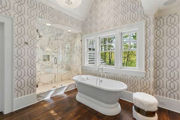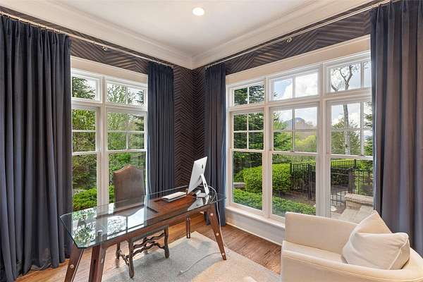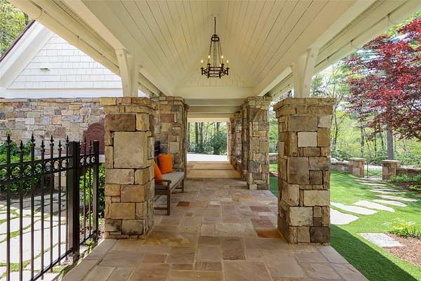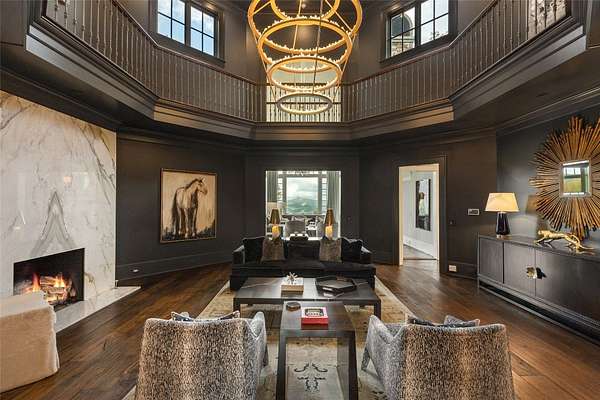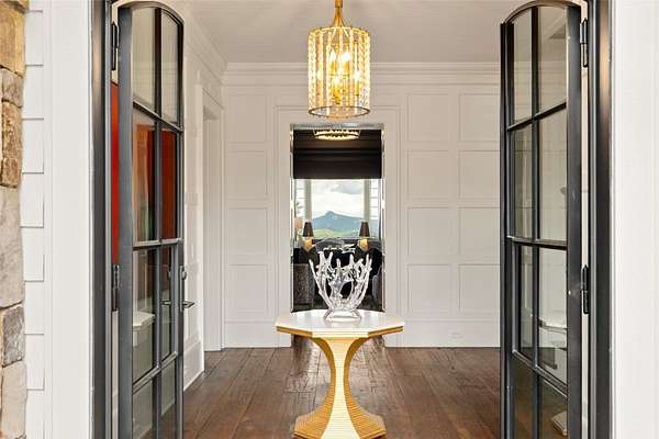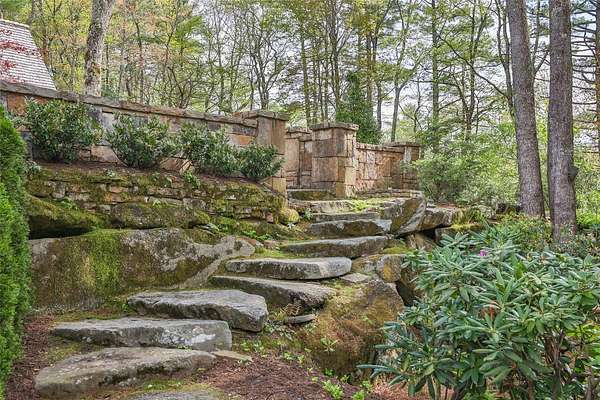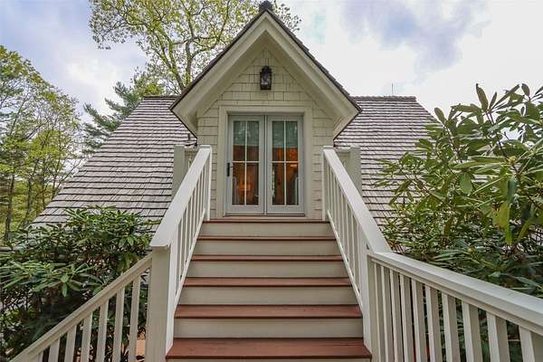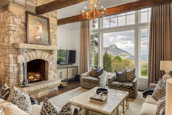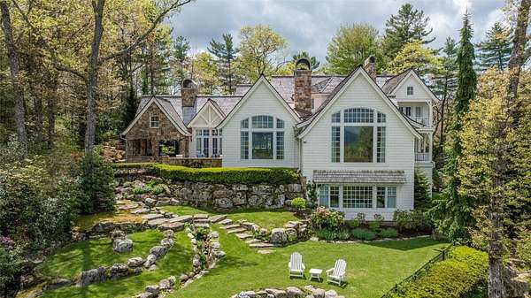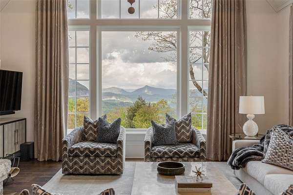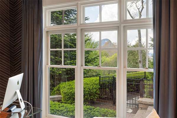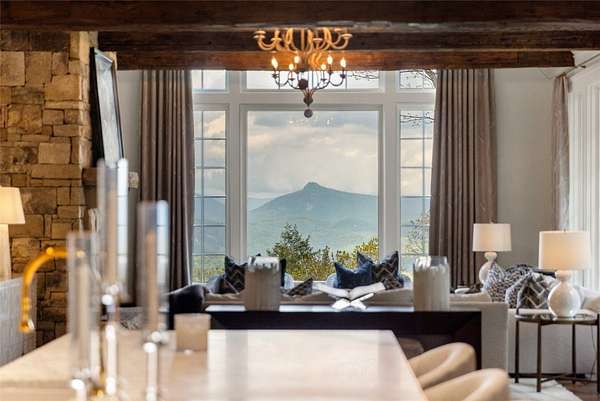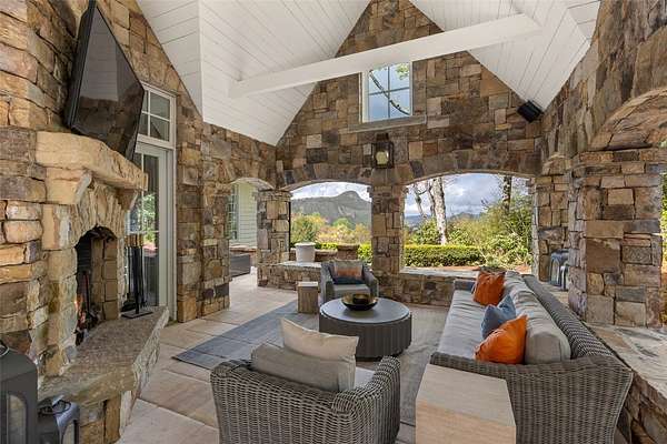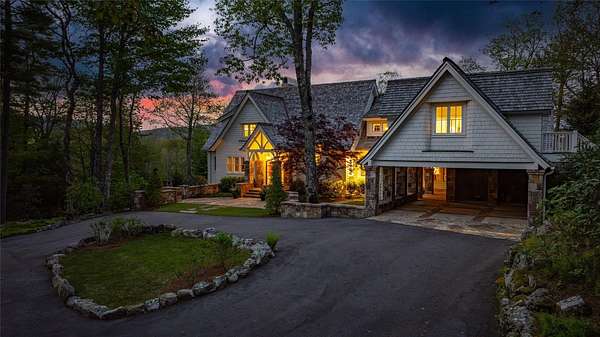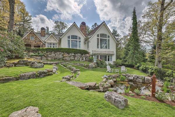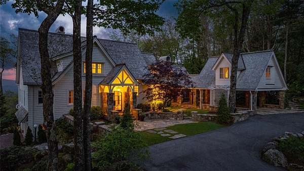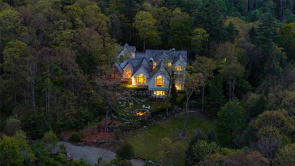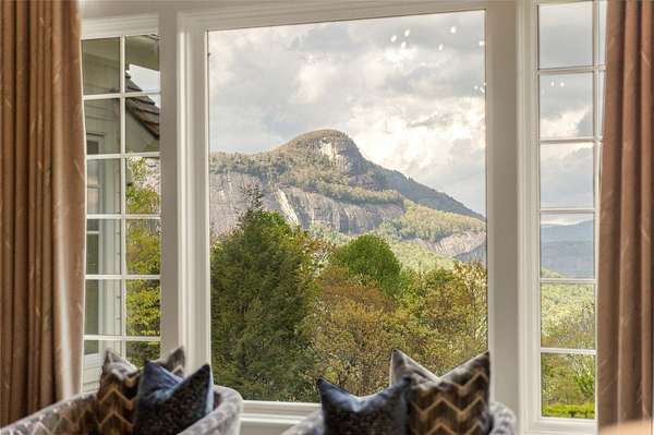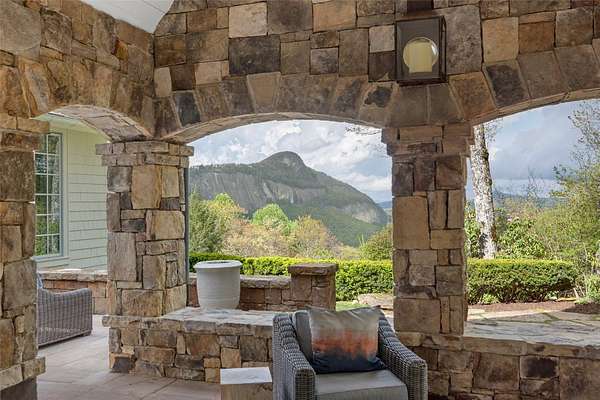 A Manor residence that stands alone, with captivating Mountain Views and tasteful elegance! Recently recently reimagined, Foxhill features luxury touches creating the perfect balance of comfort and function. Located just minutes from downtown Highlands, experience breathtaking views of Whiteside Mountain and beyond are everywhere. The library serves as a central feature of the main floor with two levels of floor-to-ceiling custom bookcases. The kitchen features Kingdom Woodworks Custom Cabinetry, full marble island and adjoining wet bar. The kitchen serves the family room and dining area each with its own stone fireplace. A larger second Great Room transitions from the library to views of mountain vistas. Think of a ballroom-sized living area with a large fireplace and full flexibility to enjoy fun or formality. Three additional interior fireplaces provide ambiance and warmth to family and guests. Note that there are two primary bedroom options, the main level adjoins an en suite bathroom featuring a covered porch with stellar views. The primary on the second level includes an en-suite, laundry room, morning bar, and some say the best view in the house. A private Guest Suite on the second level encourages sleepovers! Adding to the grandeur of the residence you'll find a full daylight lower level with a Catering Kitchen, serving the oversized outdoor patio area and wood-burning fireplace. Continuing with the lower level, is a state-of-the-art Media Room, an Office with mountain views to distract your Zoom calls, wine cellar and large laundry room. Most valuable to Foxhill are the serene outdoor living areas for enjoying nature. The crown jewel of these is the arched, covered stone outdoor family room with outdoor kitchen and wood-burning fireplace located just off the main floor. A 17th century imported fountain from Paris flanks the intimate courtyard for smaller gatherings. Quality construction down to Rocky Mountain Hardware and Water Works fixtures are everywhere. A detached guest cottage over the carport is a perfect place for guests, quiet enjoyment, and quiet time.