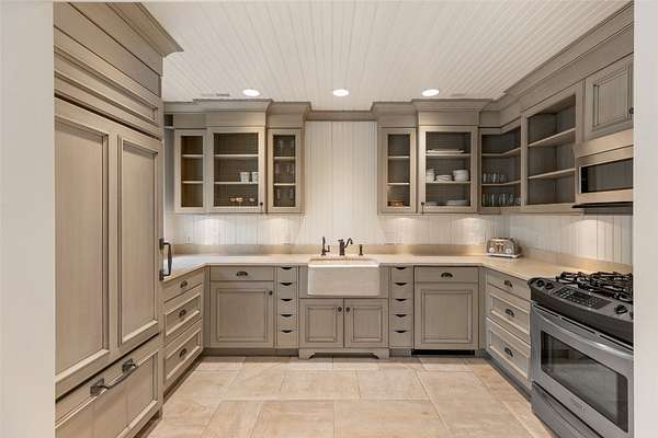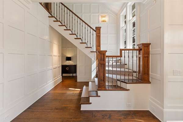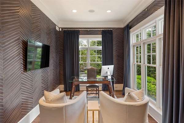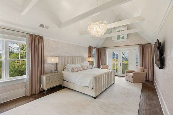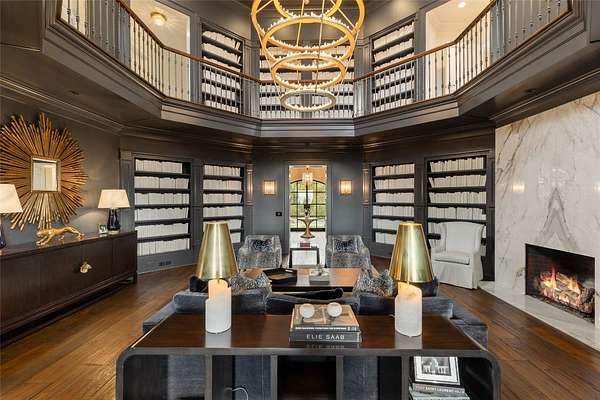 - Beamed Ceilings, Bookcases, Breakfast Bar, Built In Features, Chandelier, Crown Molding, Double Vanity, Eat In Kitchen, Entrance Foyer, High Ceilings, High Speed Internet, His And Hers Closets, Kitchen Island, Multiple Closets, Open Floorplan, Pantry, Recessed Lighting, Sound System, Wet Bar