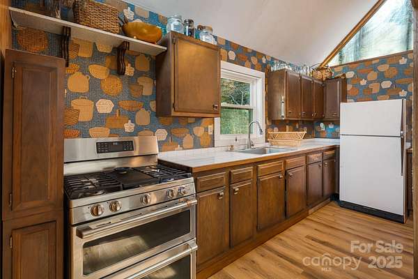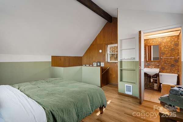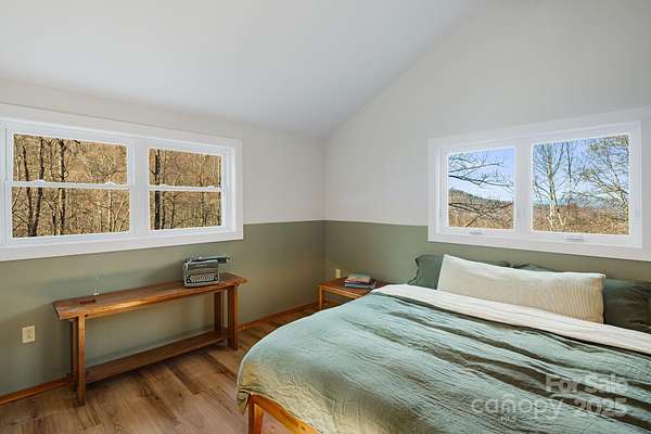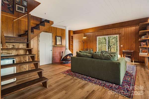 Discover simple, intentional mountain living at 1877 Secluded Valley Rd in Marshall, NC. This updated 1BR/1.5BA home offers an efficient 900+ sq ft layout with an open floor plan, minimalistic design, and peaceful mountain views. Set on 1.54 private acres with plenty of usable land, it's an ideal retreat for anyone seeking quiet, space, and a low-maintenance lifestyle in Western NC. Inside, natural light fills the main living area, featuring a cozy wood-burning stove and attractive open shelving that adds warmth and character to the space. The kitchen and living areas flow seamlessly with the outdoor living space, creating an indoor/outdoor atmosphere. The spacious bedroom upstairs includes its own en-suite half bath, and a full bath serves the main level. Major improvements provide peace of mind: new windows and doors, new decks, new septic tank, updated electrical and plumbing, plus refreshed interior finishes including new flooring and light fixtures. Enjoy coffee on the deck, explore your land, and take in the quiet surroundings, this property truly feels away from it all, yet remains within a reasonable drive to Asheville, Marshall, and Weaverville. Offered at $235,000, this is an incredible opportunity for a full-time residence or mountain retreat!