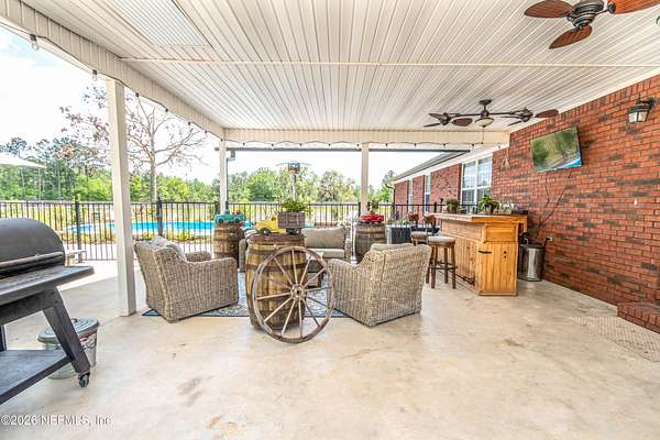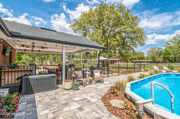 A rare opportunity to own a fully equipped country retreat and start your dream farm on 7.51 beautifully maintained acres. This spacious 2,052 sq ft home features a beautiful master suite with a walk-in shower and kitchen with granite countertops, blending comfort with style. Perfectly set up for animals, the property includes fully cross-fenced, irrigated pastures, covered run-ins, and a covered feeding area. Additional highlights include a new upgraded well & RV barn with an air-conditioned office, a dedicated tackle shed, and an insulated shed with plumbing--ideal for a workshop or future guest space. Enjoy added privacy with a remote-controlled gate. Relax by your private pool and take in the peaceful surroundings this versatile property has to offer. Red chicken house is not included