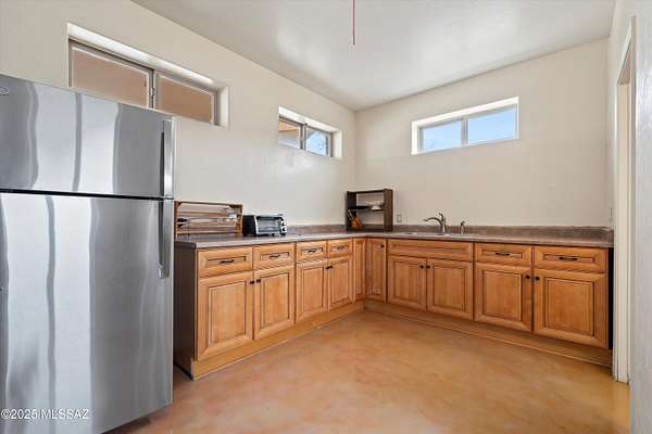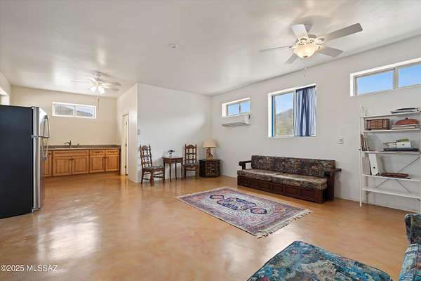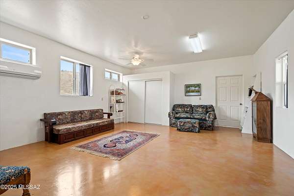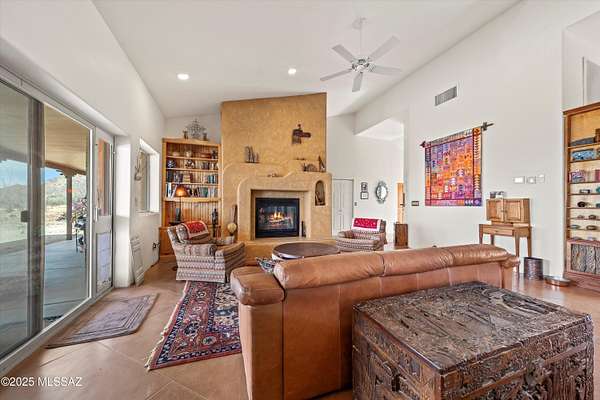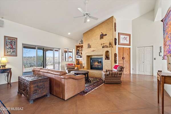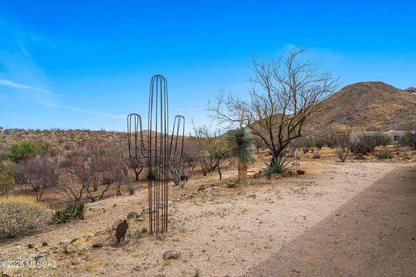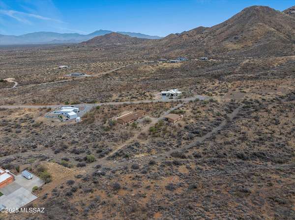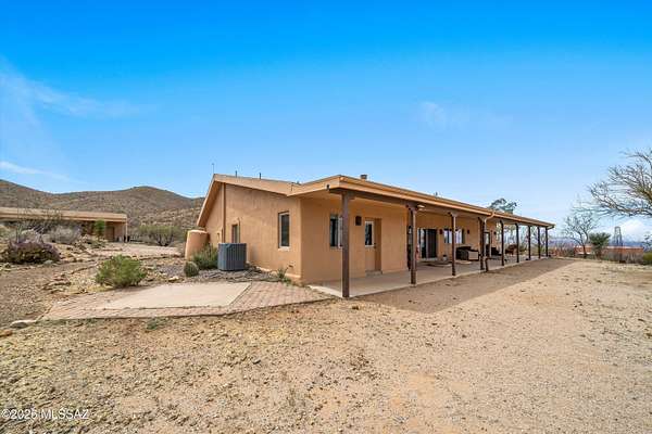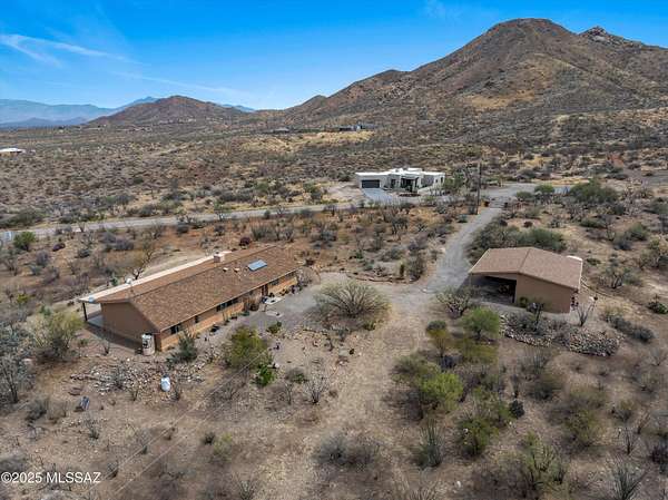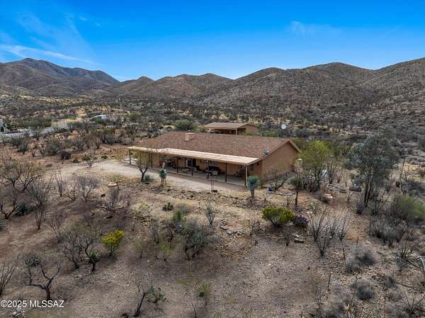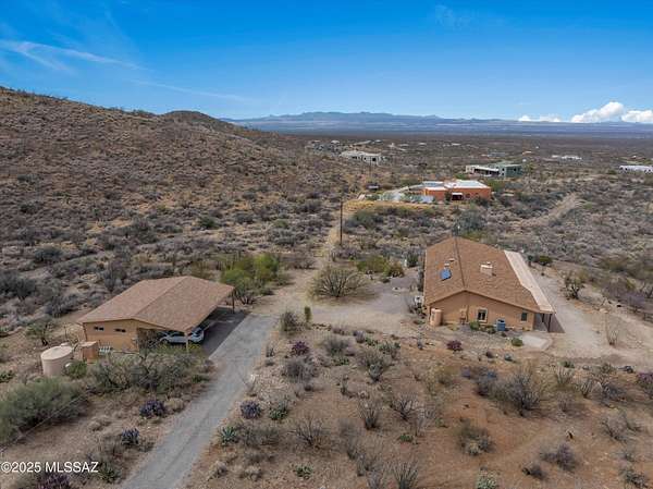 Seller will accept or counter offers between $650,000 and $700,000. Spectacular views, wide open desert vistas of the city, sunrise and sunset views from this home perched at the foot of the Santa Rita mountains. Custom built home w/ open fl. plan, large rooms, custom mill work and built-ins (made with natural pecan, cherry, mahogany, alder, cholla and other woods) make this a truly unique home. A lot of educated thought went into this home, orientation & construction. Built for major energy efficiency, metal framed stucco, thick walls created using ''Mikey Block'' (Styrofoam reinforced w/concrete and rebar), solar hot water heater circulates under floors to create an energy efficient space that's easy to heat & cool. Just over 4 acres, zoned for horses & other livestock. The main house is 3 bed/ 2 bath, featuring a large great room, formal dining room, large kitchen and a combined pantry/ laundry room. Covered back patio with expansive views of the City and the sunset.