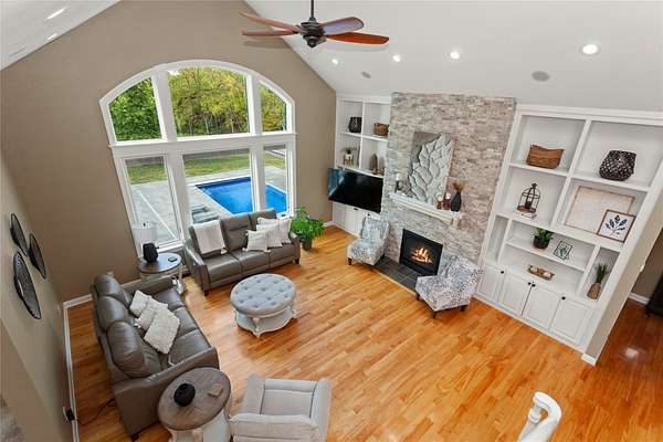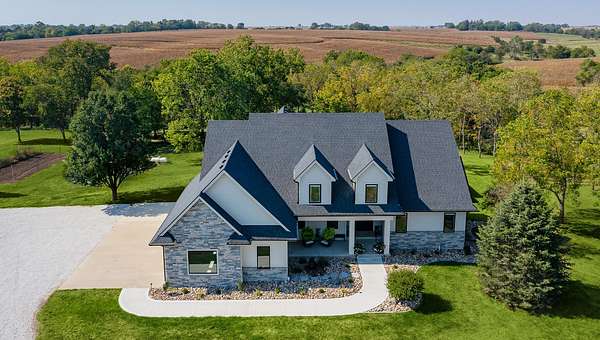 Sitting on over 32 acres and offering 5 beds, 6 baths, and over 5400 square feet... this 1.5 story home is a dream opportunity just 25 minutes from Jordan Creek Parkway! This dream acreage setting includes timber, farm ground, a creek, two large buildings (42x70' and 42x56'), and heated in-ground salt water pool with pool house! Additional features of this home include: Geothermal HVAC, fully finished walkout lower level, new roof, new windows (Pella triple pain), new siding, extensive landscaping, new interior and exterior paint, two gas fireplaces, solar located on the roof of the detached building (new in 2023), both buildings have new steel and concrete floors, Kinetico RO system and softener, high end appliances including a Viking Stove/Sub Zero Refrigerator/two dishwashers, large attached garage with epoxy floors and heater, main level laundry room and large mudroom, pool house with retractable awning, and numerous owner updates and upgrades. This home is perfectly located between DeSoto and Winterset just off of 169 and offers fiber internet and is incredibly convenient to the metro. Very easy to show, please call an agent today for a private tour of this once in a generation opportunity. Additional acres available including 7 total parcels, set up well for multi-generational living or a cul-de-sac of friends.