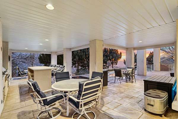 Spectacular home in the Ridges subdivision. Breathtaking views of Mueller Park Canyon the valley. This home is loaded with all of the amenities that you could ask for-swimming pool, 2 pickleball courts, indoor basketball court, home theater, second kitchen, BBQ kitchen out by the pool, 4 car garage upstairs with an additional 4 car garage underneath. Main floor living with the primary bedroom/bathroom, kitchen family room, office and laundry room all on the main floor. Did I mention the view! You've got to see the view for yourself. Lots of home for the money listed at $198 per square foot. Minutes from two great golf courses, very close to spectacular mountain biking and hiking trails. Only 15 minutes from downtown Salt Lake City and the International Airport.