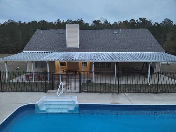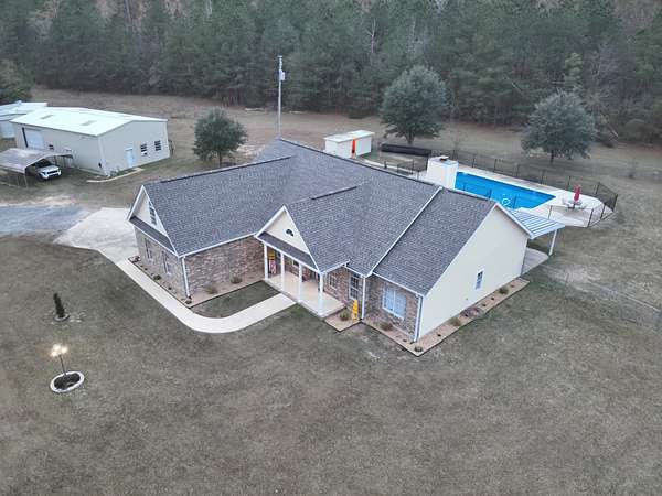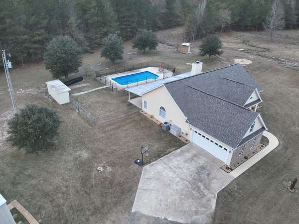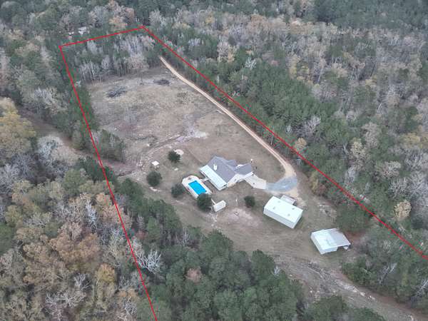 Union County, Arkansas about one mile east of Norphlet, AR; six miles southeast of Smackover, AR; eight miles north of El Dorado, AR. State Highway 335, known as 'Tate Road', runs along the north side of the tract. A private gravel driveway that connects to AR-Hwy 335 and runs along the eastern line of the property for over 300 yards to the home, pool/backyard area, and two shop buildings. On the property, you'll find a mixture of roughly 20-year-old natural timber granting privacy as well as an ephemeral stream and ~2-acre open field/pasture. A gas pipeline right-of-way about 50 feet in width bisects the southwestern part of the land. The home layout consists of two smaller bedrooms with one full bathroom between them, a larger bedroom with access to its own full bathroom, and a half-bathroom close to the two-car garage entrance. Additionally, the main level holds a kitchen adjoining the living room and dining room along with an open playroom; a laundry room with a new washer/dryer setup. Upstairs you'll find a bonus room that also grants access to the attic. The home was built in 2008 and has seen extensive remodeling starting in early 2023. All new luxury vinyl plank flooring was laid on the main level; new carpet was installed in the bonus room and stairs leading up from the main level. The kitchen consists of new appliances including a dish washer, farmhouse sink with disposal, oven with electric stove range, and refrigerator (microwave from original homeowners). The kitchen and bathrooms have been updated with granite counter-tops and new faucets. After receiving a fresh coat of paint on their walls, each room stands out and feels soothing. The architectural shingled roof was replaced in July 2025; the exterior walls also received a new coat of paint at this point. The HVAC is about five years old. Starlink internet has the site provider since 2024.Step outside and you'll be welcomed with a 5ft fenced-in backyard roughly a third of an acre in size containing an 18ft x 36ft (3ft-6ft deep) inground saltwater pool and equipment shed along with a dedicated pet area/hut and firepit to settle by. Also found in the compound is 30ft x 50ft metal shophouse with a full bathroom, a large open work/storage area, a second level for additional storage, and multiple rooms/closets to fulfill your dream of setting up your own 'hobby cave' (no central heat/air). Another 30ft x 24ft metal utility building is also nearby that has been utilized for storing materials and as a 'catatorium'.