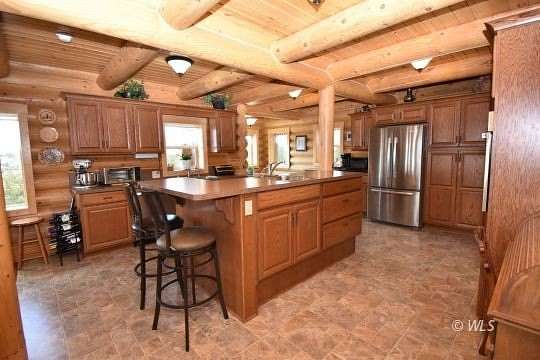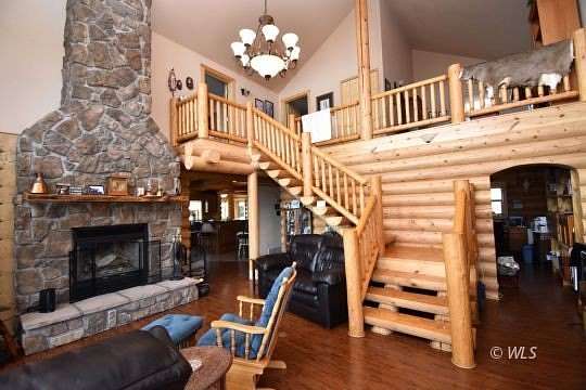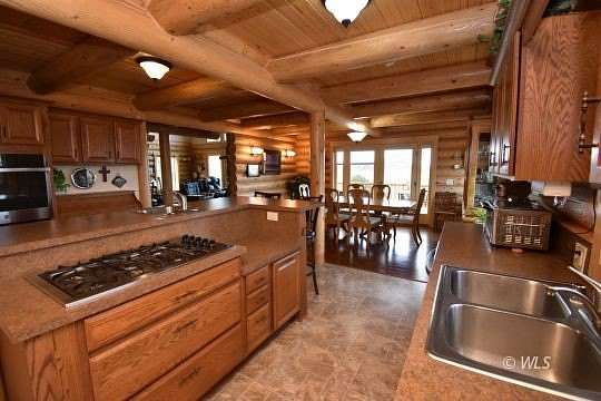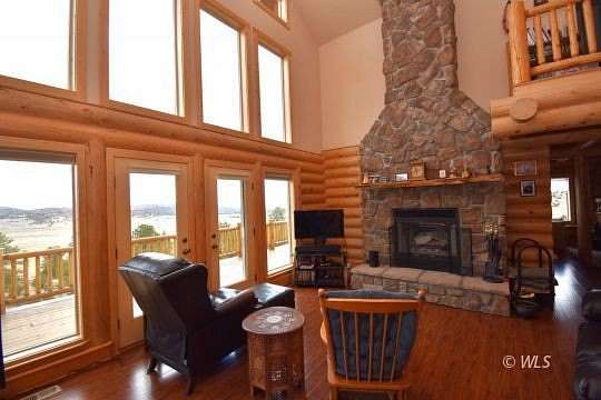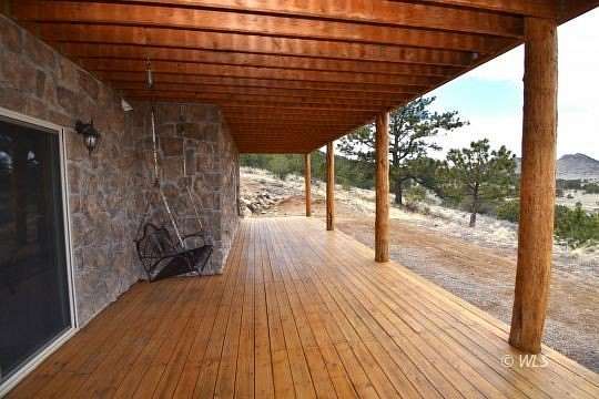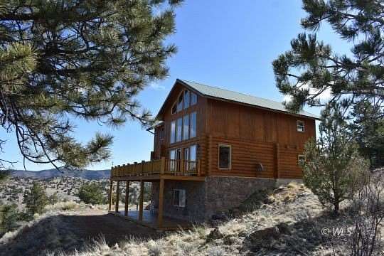 This custom Western-style LOG HOME ON 35 ACRES blends rustic charm with upscale refinement. Crafted from natural timber and river rock, the home features towering vaulted ceilings, a massive stone hearth, and expansive windows that frame sweeping views of the surrounding wilderness including the Sangre De Cristos, Collegiates & Wet Mountains. Inside, warm wood tones create a cozy-yet-grand ambiance. Perfectly suited for those seeking both rugged Colorado vibes and refined mountain living. The grand great room with with log staircase and custom stone hearth is the heart of this home. The spacious kitchen has an island, dual sinks and plentiful custom cabinetry, providing a place for everything. Upstairs is the primary suite with spa like bathroom, a laundry room and office. The basement has a kitchenette, bedroom and bathroom making it an excellent place for your guests to have their own space. Expansive upper and lower decks for entertaining and already wired for your future hot tub! An attached 2 car garage and detached 30x40 RV barn with power, completes this amazing property. A beautiful homestead located on a county maintained road with good year round access and no HOA.