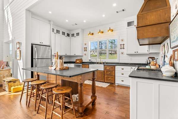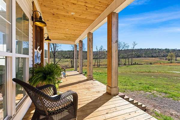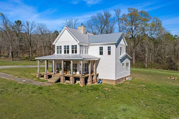 Welcome to your private country oasis! Nestled in an exclusive gated community in Mayflower, this stunning 3,000+ sq ft modern farmhouse sits on 20 picturesque acres complete with a meandering creek. With wide-open spaces, there is endless potential for a future barn, horses, or livestock. Inside, soaring two-story ceilings and crisp white shiplap walls beautifully frame the magnificent floor-to-ceiling stone fireplace. Hardwood floors flow seamlessly into the open-concept chef’s kitchen, boasting a large island, elegant countertops, and a custom wood range hood. The meticulous floor plan features 4 beds and 3.5 baths. The main level includes a luxurious primary suite with a spa-like bath and massive closet, plus a second en-suite bedroom, walk-in pantry, and guest half-bath. Upstairs offers two generously sized bedrooms with walk-in closets and a shared full bath, connected by a balcony overlooking the stunning living area below. Complete with a durable metal roof, covered porches, and an oversized attached garage with extra storage. A rare opportunity for premium Arkansas country living!