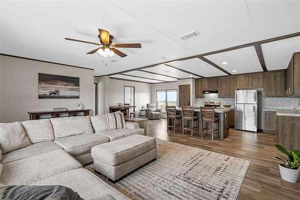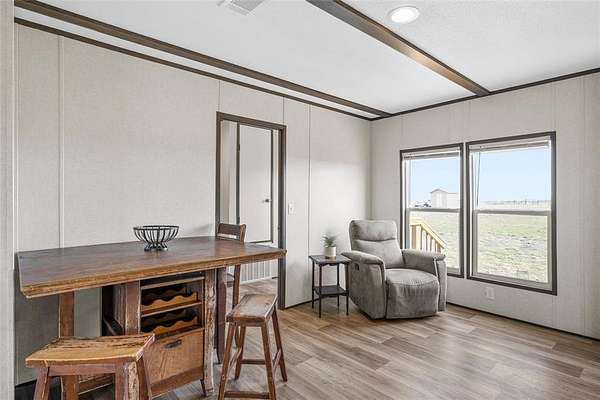 If you've been waiting for some land, this might be it! 20 acres, fully fenced, ready for horses, with a pond and room to breathe. This property is perfectly set up with an iron pipe entry fence, crossed fenced, corrals, two outbuildings. Also cross-fenced with two separate entrances, including a secondary access point from an adjacent tract. Power and water are available at the road, offering excellent flexibility if divided into two separate properties. Currently under ag exemption. The house is in immaculate shape with 3 beds, 2 baths, and two living areas. The best part? Stunning views of the conservation lake from the oversized front porch wood deck, living room, and primary suite. Priced below its recent $465K appraisal—step into an incredible opportunity to gain instant equity. Low taxes, little traffic, and total privacy—just the way country living should be.