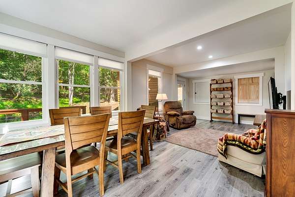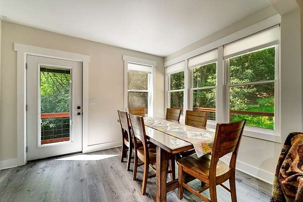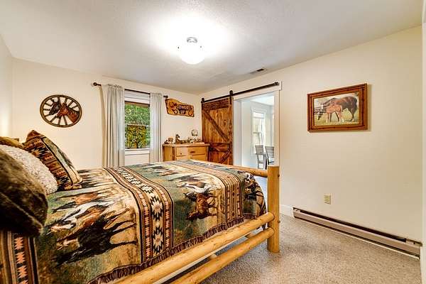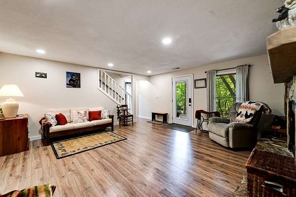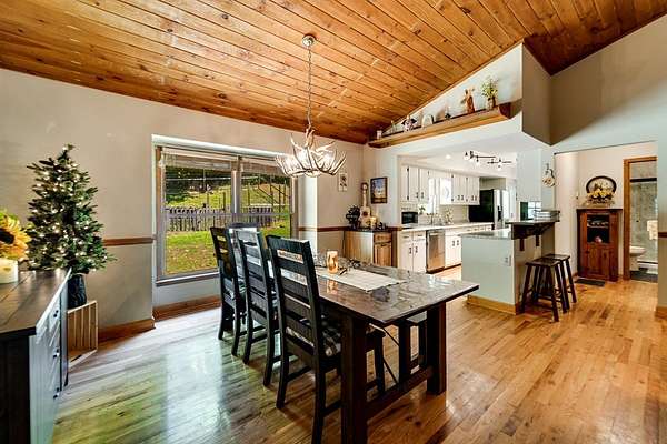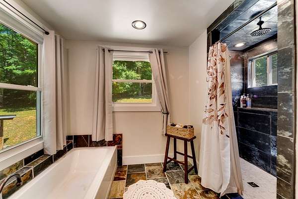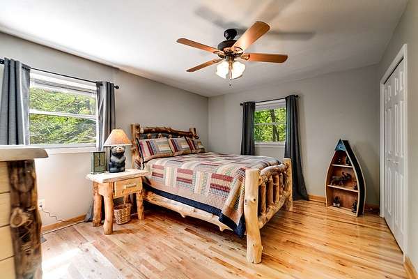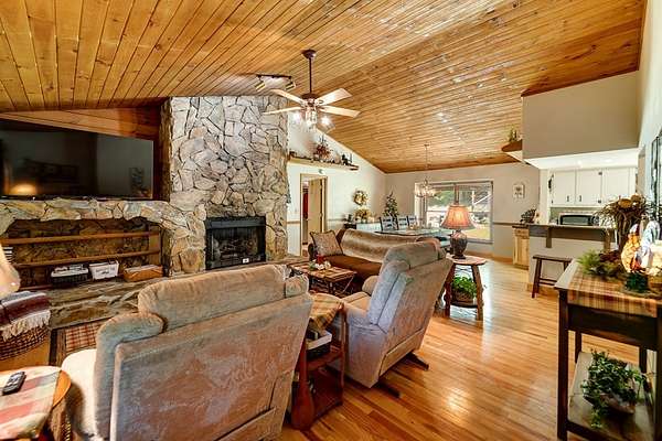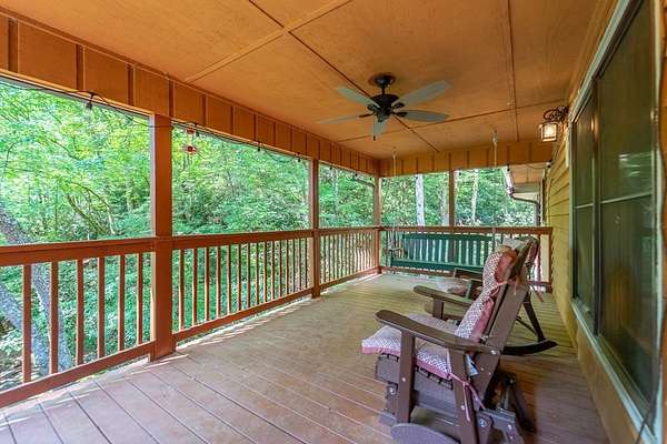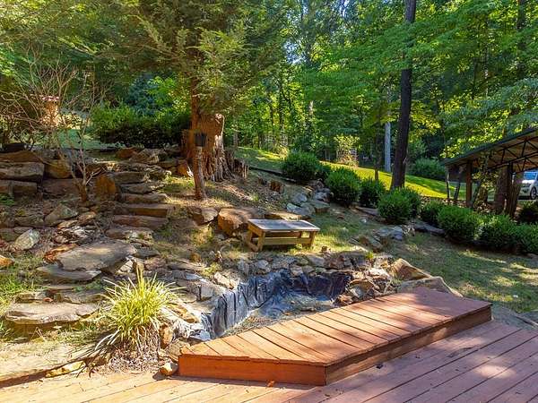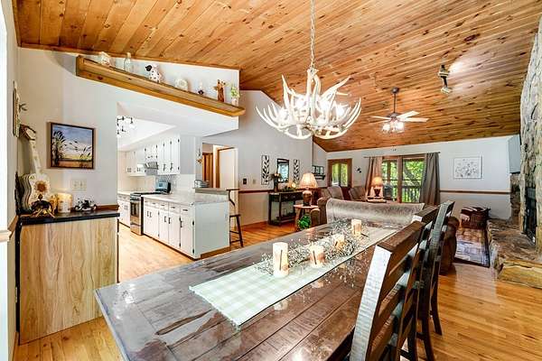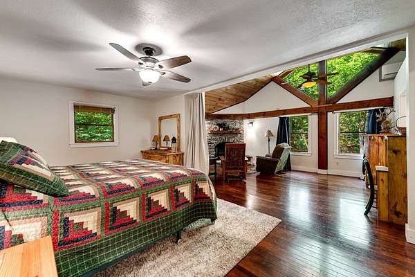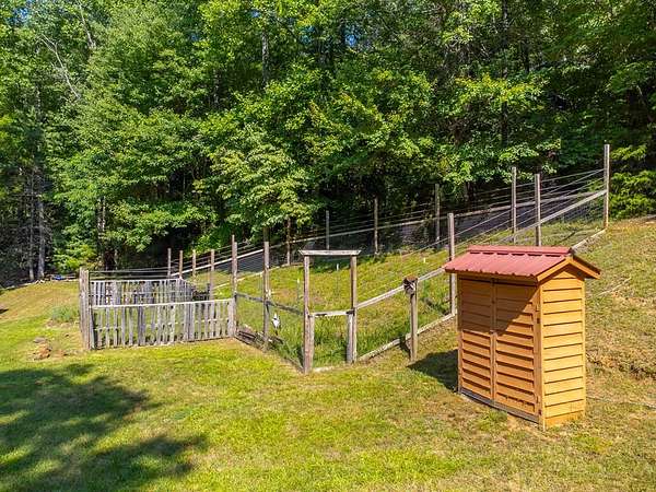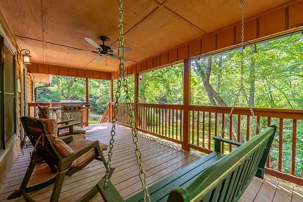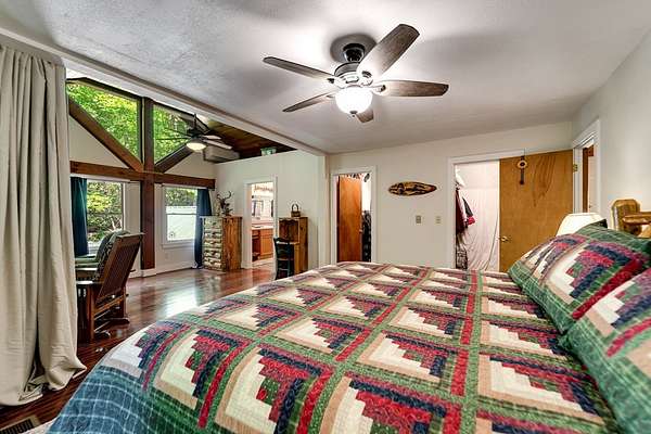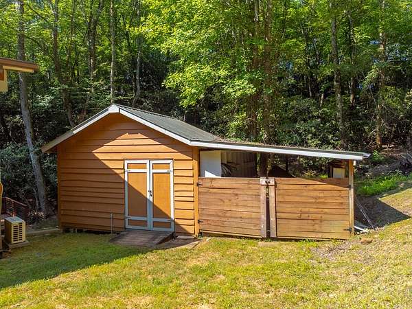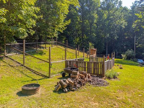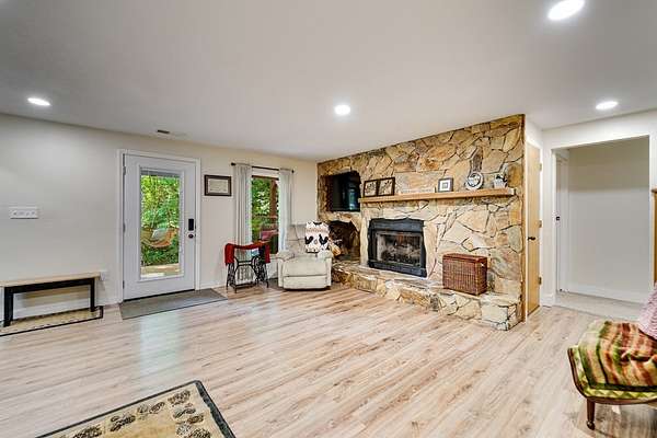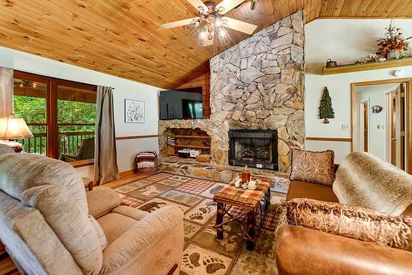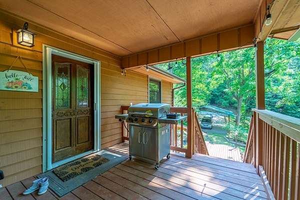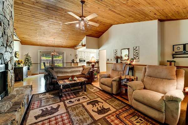 Beautiful Mountain vacation home or full-time home. This home boasts 3 bedrooms, 3 baths, and 3 Bonus rooms just 10 min. to Franklin NC or Clayton Ga. New roof installed in 2018, HVAC in 2023, whole house 24KW generator in 2024, 2 car detached carport with electric in 2024 are just a few improvements to this home. Enjoy living in Heritage Mountain Estates with paved roads and a cascading babbling stream running through your property. 2-large, covered porches to enjoy outdoor entertaining or just relaxing and watch the wildlife. Primary bedroom and ensuite on main level along with 2nd bedroom and bath. Lower level boasts a large Family Room along with 3rd bedroom, 2 additional bonus rooms and 3rd bath.