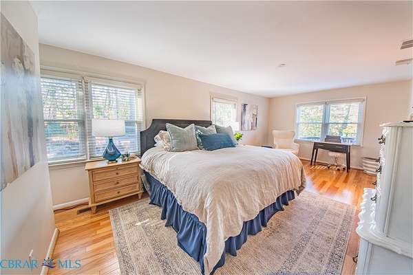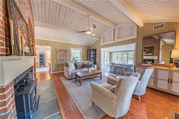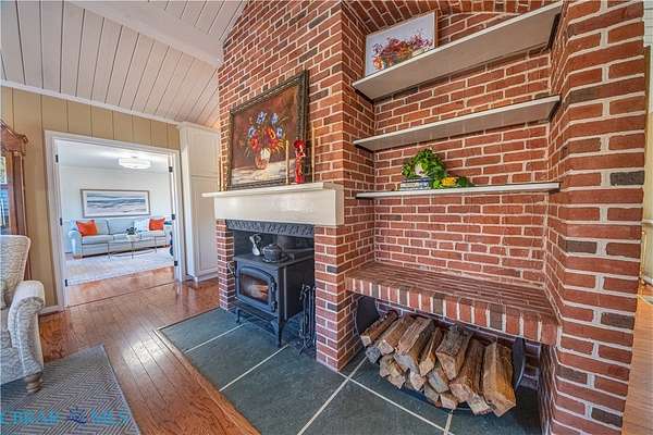 - Beamed Ceilings, Bedroom On Main Level, Bookcases, Built In Features, Cable Tv, Ceiling Fans, Dining Area, Eat In Kitchen, Fireplace, Granite Counters, High Speed Internet, Kitchen Island, Main Level Primary, Separate Formal Dining Room, Wired For Data