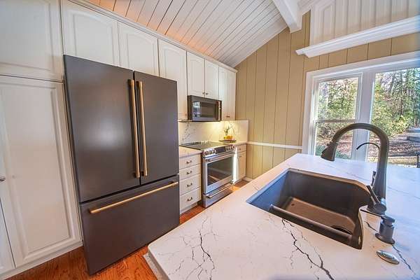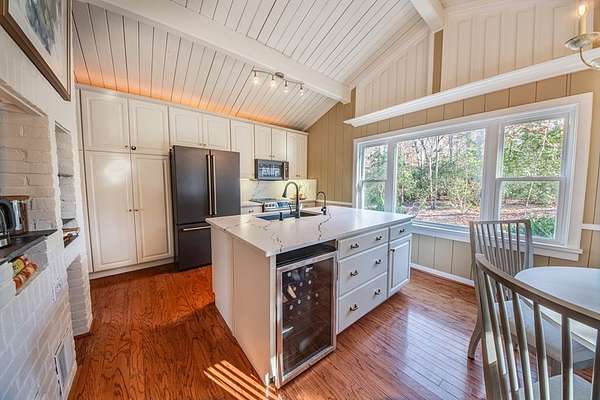 Settle into calming creek views and welcoming modern updates throughout this inviting waterfront home on Taylors Creek, just minutes from Irvington, Kilmarnock, and White Stone. Recent improvements include extensive tree clearing that opened the creek vista and a fully renovated kitchen with Caf appliances, quartz countertops, and a generous island perfect for gathering. Bright and welcoming living spaces include a vaulted living room with abundant natural light, a cozy waterside sunroom with deck access, and a flexible dining or secondary living area. The waterfront primary suite offers a private bath and custom walk-in closet, Two additional bedrooms and a bath-and-a-half comfortably accommodate guests, and a dedicated laundry room adds convenience. Outdoor living is effortless with a back deck overlooking the creek, a dock with boat lift 3' MLW, a detached garage, and a separate storage shed, all set on low-maintenance grounds ideal for full-time living or weekend escapes. Home systems include 2022 septic system, Kohler 12kW generator, high-speed internet, two heat pumps with gas furnace backup, two mini-splits, and a tankless water heater. With clean modern finishes, open water views, easy access to the Corrotoman River, and a close-to-town location, this home is a move-in-ready coastal retreat designed for effortless creekside living.