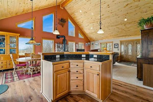 Nestled among a serene grove of aspen trees, this mountain getaway offers the perfect combination of privacy, comfort, and breathtaking scenery. Set on a 2.5 Acre lot towards the end of a cul-de-sac, this property provides the ultimate escape with panoramic views -- including an unforgettable view of Pikes Peak from your own backyard. Step inside to an open floor plan that welcomes natural light and creates a warm, inviting space -- ideal for entertaining or relaxing after a day of adventure. The attached 2 car garage adds convenience and storage, while the expansive outdoor space offers room to roam and endless opportunities to enjoy the Colorado outdoors. Whether you're seeking a full-time residence, weekend retreat, or investment opportunity, this home checks every box. Located just minutes from the town of Fairplay and a short, scenic drive to Breckenridge, skiing, hiking, fishing, and dining are always within easy reach.