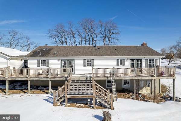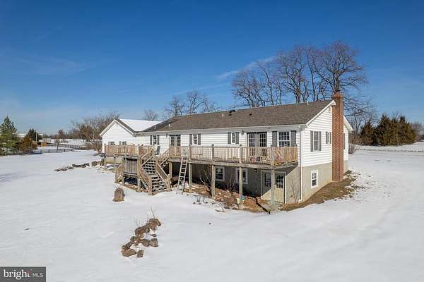 This spacious 4 bedroom ranch style home situated on 8.72 acres has a GREAT location convenient to schools, parks, shopping , major highways and at a GREAT price consisting of 1,910 sq. ft. of living space on the main level, offering a full partially finished basement with a full bath, window(s) and a french door leading to the rear yard. The home offers loads of storage, handicapped access on the main level, a wonderful kitchen with an island, large pantry, two woodstoves on each level, an oversized garage with 10' garage door, french door(s) leading to the 70X10 rear deck for family and friends to enjoy gatherings and cookouts. The home owners have made many improvements such as: New 30 yr. architectural roof in 2022, New HVAC, h2o heater, water conditioner, UV light, kitchen appliances, new light and plumbing fixtures, many new cabinets, Nest thermostat, updated bathrooms in 2023. freshly painted and several new windows in 2026. All sizes & measurements are approximate.