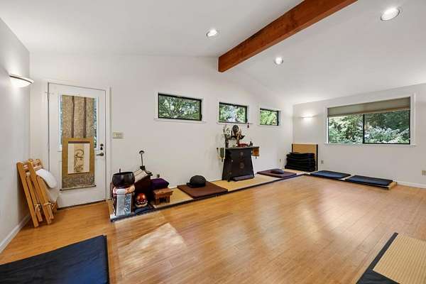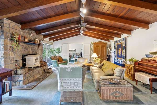 Set upon an extraordinary 3.25-acre setting, this charming one-story home offers a rare sense of seclusion and natural beauty, further enhanced by its adjacency to a protected 6-acre parcel that ensures enduring privacy. The grounds are a true sanctuary, featuring a 40-year-old native garden that blooms nearly year-round, and a spacious rear deck overlooks this serene landscape, creating a seamless connection between indoor comfort and outdoor living. The property is graced with mature fruit trees, including pear, cherry and peach trees that add both charm and seasonal delight. Inside, the living room is a striking centerpiece, featuring a grand stone fireplace with a wood stove insert, complemented by soaring redwood-beam ceilings that add warmth and character to the space. A generously sized family room offers flexibility for relaxation, entertaining, or extended living. Modern convenience meets country tranquility with reliable high-speed internet, making this an ideal retreat without compromise. Surrounded by scenic, horse- and dog-friendly trails and supported by a welcoming, close-knit neighborhood, this is a setting that offers both peaceful escape and a genuine sense of community and exceptional opportunity to experience refined rural living at its finest.