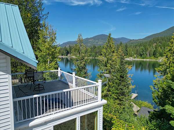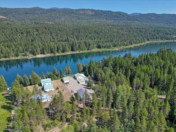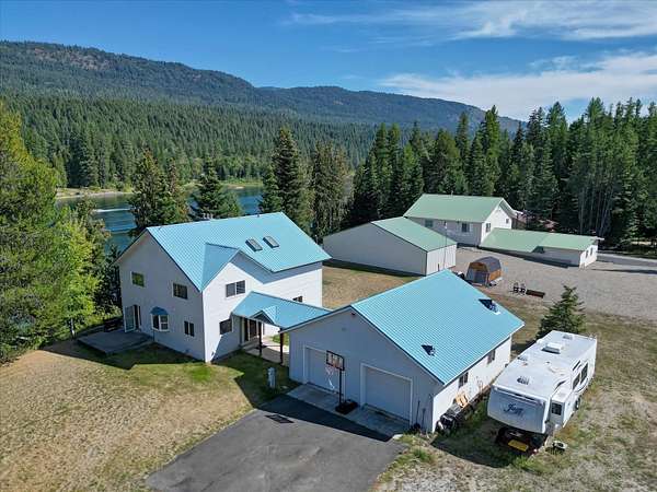 204' of Pend Oreille River Frontage. This waterfront Haven is Built to last with 12" Insulated Concrete Form (ICF) construction, this home offers exceptional energy efficiency, year-round comfort, sound insulation, and long-term durability-Just minutes away from Grocery store and hardware store. 4 bedroom and 3 bath (one non legal). Radiant floor heating, soaring cathedral ceilings. Sunroom with 3 way views of the river. The rooftop sun deck off the primary suite is ideal for stargazing or soaking up the sun. A cozy pellet stove anchors both the living and dining room. Fully equipped kitchen and large utility room with pantry, sink, washer/dryer. The fully finished ICF oversized 2-car garage includes a bathroom. There's also room for all your toys with 4-bay Metal garage with 10' doors. Down by the dock and beach is a small cabin built with convenience in mind for enjoying Morning Coffee or grabbing a cold drink and sitting under gazebo. Municipal Airport only 1 mile away!