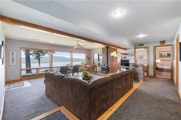 Wake up to breathtaking Beaver Lake views every morning in this exquisite luxury estate, a rare opportunity to own a piece of paradise. The gourmet kitchen equipped with stainless steel appliances and a large island, is perfect for entertaining. Enjoy relaxing on the expansive deck, what a perfect way to start or end the day. This spacious,well maintained 4000 sq. ft home features 5 bedrooms, 3.5 Baths with solid marble countertops, 2 living areas, large garage, bonus room over the garage, double ovens, solid doors throughout, 2 woodburning fireplaces, LR fireplace is vented into the primary BR, Lower level Fireplace is soapstone and will keep the whole house cozy, metal roof, generator and so much more! Private well and septic. Large open yard with a firepit and plenty of room for the whole family. Well situated on 3 acres. Limited Lake Access is a short drive/walk below. Additional bonus is that it is selling fully furnished! *note a few perso items do not conv.This is a must see, you will not want to leave!