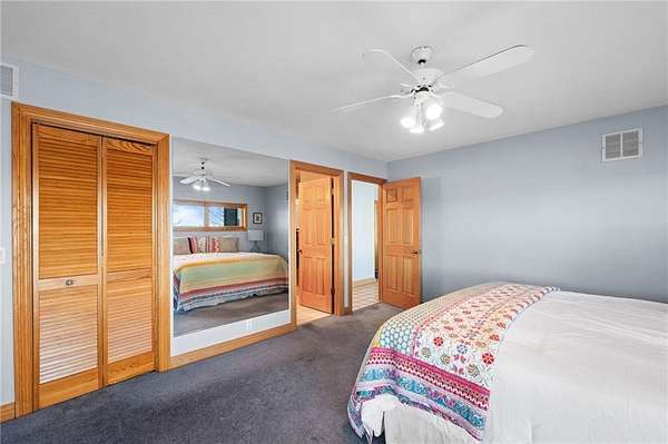 - Attic Storage, Blinds, Built-Ins, Ceiling Fans, Eat-in-Kitchen, Ice Maker Connection, Programmable Thermostat, Walk-In Closets, Woodstove