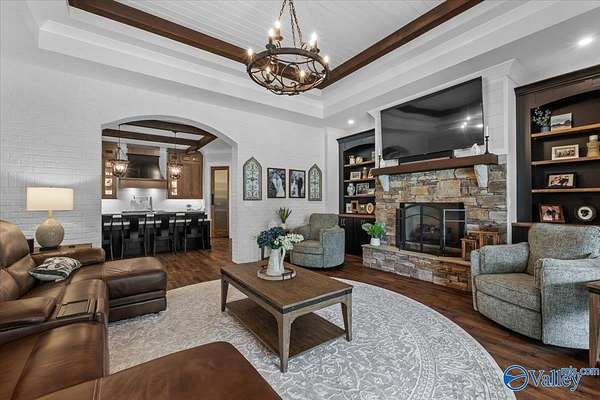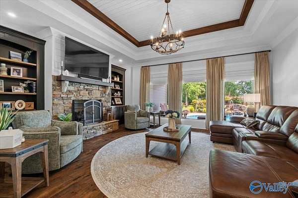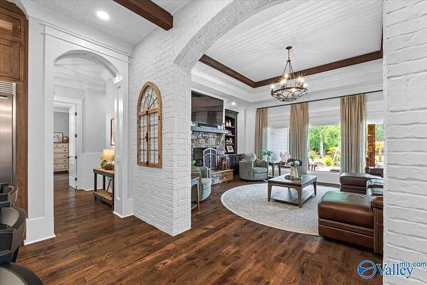 This custom estate features unparalleled privacy and craftsmanship on 9.91 gated acres! Showcasing tongue-and-groove ceilings, a grand great room with 12' trey ceiling and stone fireplace, and remodeled kitchen featuring custom Mouser cabinetry, quartz countertops, and a 48" gas range. Each bdrm offers a private bath and walk-in closet, including a 4th bdrm/billiard room upstairs. Other highlights include a theater room, storm shelter, central vac, security system, and Tonal workout space. Outdoor features include a saltwater pool and boulder waterfall, surrounded by scenic views. The climate-controlled shop has living quarters. Detached insulated garage with loft adds extra storage.