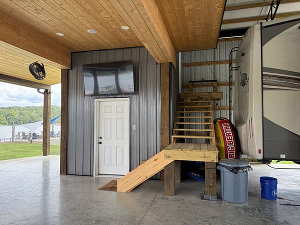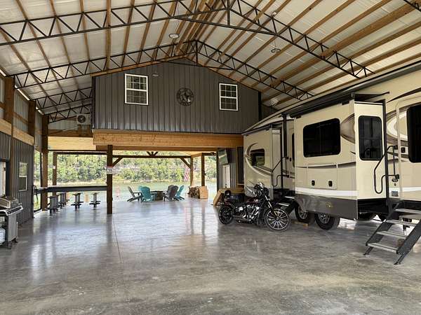 The front lot 46 A features a spacious 40x80 building with a loft bedroom and living room accessible by a handicap elevator, a full kitchen with mini split heat and air, bathroom/laundry room, storage room, bar top seating area on the Tennessee River and two 50AMP hookups with two septic dumps. All TVs, appliances, furniture, grill, and chairs convey (XL fire black pit excluded). You'll also enjoy, planter boxes, and recreational extras like kayaks!