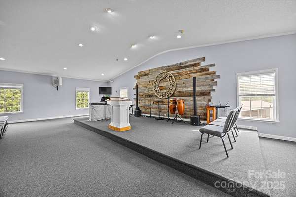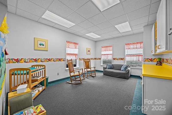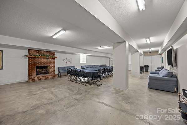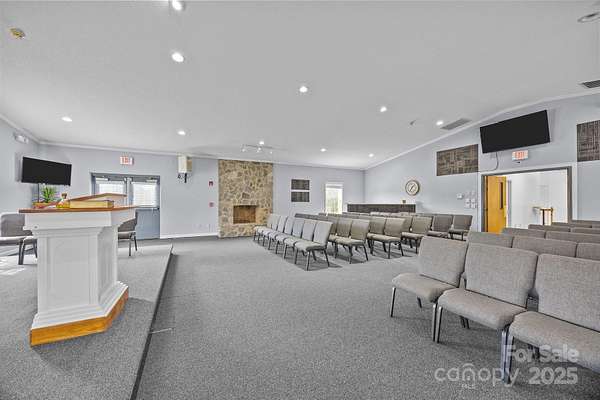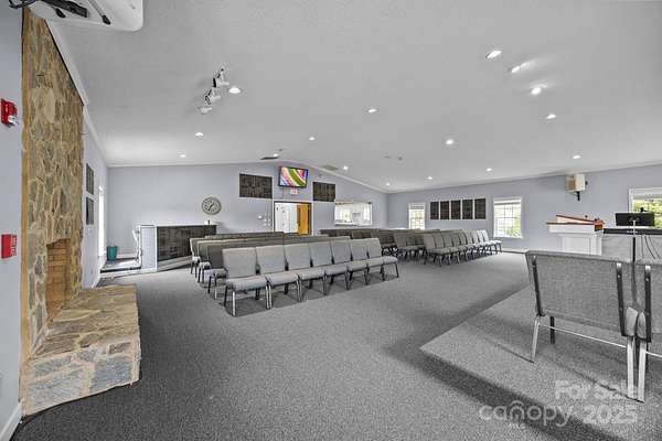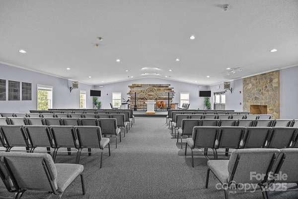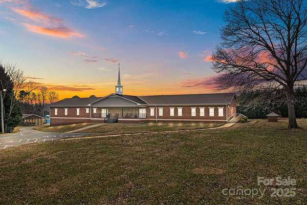 Rare opportunity to own a nearly 10,000 sqft building on 5 Acres with ample parking under tax value. Currently being used as a church, could be a school, etc. Full brick building has a huge covered front porch with two entrances, Beautiful spacious Lobby, Main floor has 13 Rooms that are currently being used as Classrooms, Offices or Storage. Includes a full kitchen with ample counter space with a pass through to the assembly room. Stone fireplace. Lower floor has a large Dining Hall with a brick fireplace and 3 additional rooms. Mens bath with 3 stalls & Womens bath with four stalls on the main level and individual mens and womens bath on lower level. Approximately 70 parking spaces, a large covered pavilion for all your outside activities plus a basketball court. Why wait to find land and build when this opportunity is available! Check with zoning for any changes you may want to make to the use.
