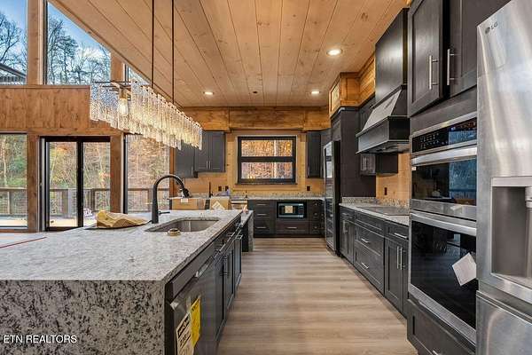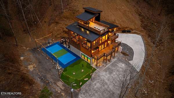 This rooftop mountain retreat projected to do over $400K is tucked away in complete seclusion, yet just minutes from Dollywood. Fully furnished and certified to sleep 35 guests, this 7-bedroom, 7-bath luxury lodge offers unmatched amenities-including outdoor pickleball, basketball, putt-putt, and one of the largest custom indoor pools featuring a beach entry access and stone waterfalls. Step outside to explore or unwind on private cantilevered bedroom decks that blend seamlessly into the surrounding landscape. Gather together on the rooftop oasis, featuring a hot tub, fire pits, outdoor kitchen, and TV, creating the ultimate space for entertaining or relaxing under the stars. Whether you're building unforgettable family memories or adding a top-tier performer to your investment portfolio, this property delivers on every level. It's more than a getaway-it's an experience.