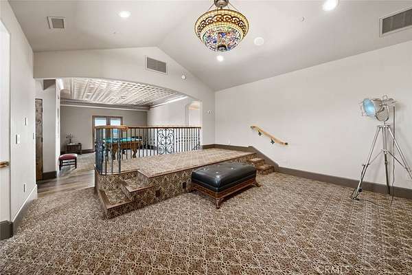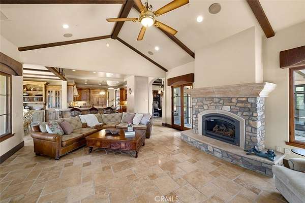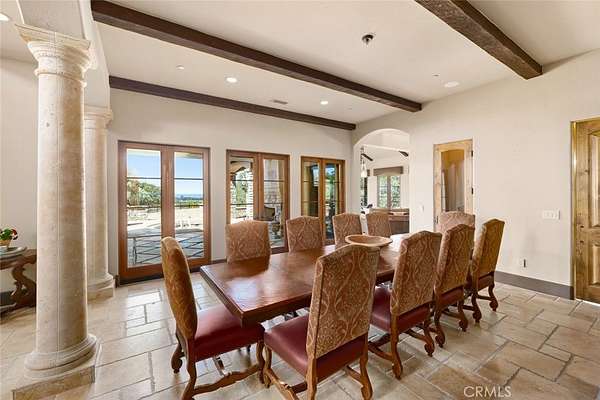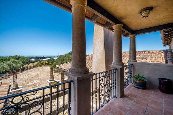 This extraordinary Tuscan-inspired estate offers a blend of refined craftsmanship, privacy and sweeping ocean vistas. The main residence spans 6,218 sq ft with timeless architectural detail paired with modern luxury. The living room has elevated beamed ceilings, stone fireplace and walls of windows that bring in natural light while framing ocean and coastal oaks. Mediterranean limestone flooring flows throughout the lower level, leading to a thoughtfully designed floor plan with a formal dining room, breakfast nook, and a gourmet kitchen. Outfitted with top-tier appliances—a Miele oven, built-in espresso machine, steam oven, and dishware warmer, along with a Sub-Zero refrigerator, dual freezers and a Wolf cooktop—the kitchen is both elegant and highly functional. The main home offers four bedrooms and in addition there is a 371 sq ft casita with studio bedroom, kitchenette and bathroom, ideal for guests or extended family. The owner’s suite is a true retreat complete with a ocean-view deck, spa-like en-suite bath with soaking tub, step-in shower and access to an additional view deck. Adjacent to the suite is a dedicated exercise room featuring a built-in sauna, creating a serene wellness space. Designed for both relaxation and entertainment, the estate also includes a billiard room with wet bar, a home theater, a refined library/study and the convenience of an elevator connecting levels. In addition to the main home and casita there is an attached yet fully private guest quarters offering 1,440 sq ft of living space with a granite fireplace with iron mantle, a spacious bonus room and direct patio deck with more ocean views. A unique floor lift platform leads to a rooftop retreat, where panoramic views and stargazing opportunities await. Car enthusiasts and hobbyists will appreciate the expansive garage complete with abundant storage and workshop area. An additional finished bay features polished floors and panoramic doors that open seamlessly to the outdoor living areas, blending indoor and outdoor entertaining. The grounds offer open spaces ready for a future pool. Follow the path through the oaks to a separate graded area at the back of the property with it’s own driveway access that provides an additional guest house, shop, or ADU. Located not far from Village of Arroyo Grande, beaches, shopping and all that the Central Coast has to offer. This one-of-a-kind estate delivers an unparalleled lifestyle of luxury, comfort, and multi-generational living.