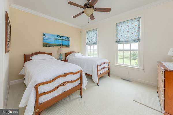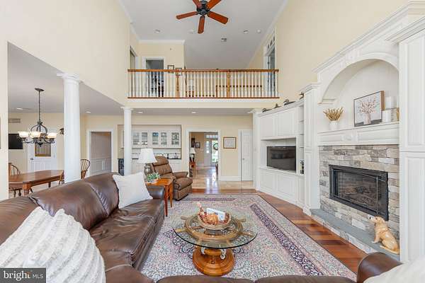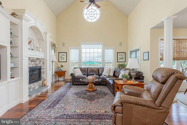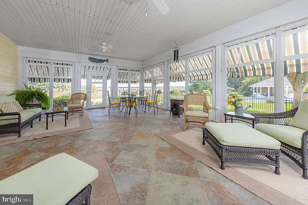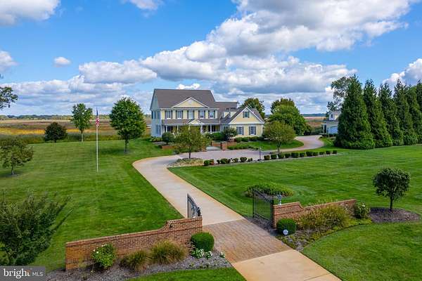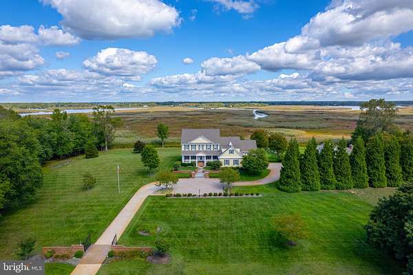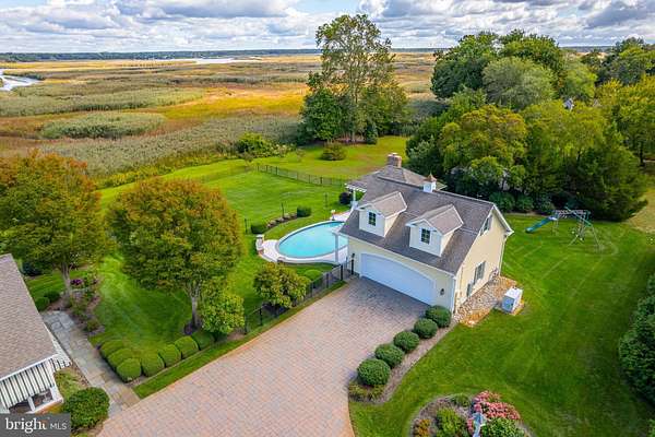 Perched along the peaceful Maurice River, just outside of Historic Mauricetown, this custom-built estate embodies refined country living with effortless access to Philadelphia, and the beaches of Cape May, Avalon, and Stone Harbor. With 3 bedrooms, 3.5 baths, and extraordinary craftsmanship throughout, this home balances sophistication, comfort, and retreat. Designed by William Poole Designs of Wilmington, NC and built by E.D. Builders, it reflects timeless architecture and enduring quality. A sweeping drive winds through manicured lawns to wrought-iron gates framed by brick pillars and lanterns. The facade is both commanding and inviting, featuring classic HardiePlank siding in a soft hue, crisp shutters, brick accents, and a gracious front porch. Inside, the grand foyer showcases a Venetian crystal chandelier, intricate mosaic inlay, and natural stone flooring. To each side, the formal living room glows with crown molding and hardwoods, while the dining room is designed for memorable gatherings beneath its own dazzling chandelier. At the heart of the home, the chef's kitchen is functional and beautiful. Hand-painted Italian tile, granite counters, stainless appliances (Wolf range), and a butler's pantry and bar are complemented by custom cabinetry. An adjoining breakfast area offers panoramic meadow views, while the kitchen opens seamlessly to a soaring family room with a custom stone gas fireplace and custom built-ins, creating a layout that transitions easily from quiet mornings to entertaining. The main level also includes a private guest suite with full bath, a powder room, and a large laundry room with custom cabinetry, utility sink, and direct access to the oversized two-car garage. Upstairs, the open gallery overlooks the family room. Graceful transoms add architectural character, and a Juliet balcony provides a dramatic touch. The primary suite is a serene retreat with windows framing sweeping landscape views. Its spa-inspired bath features dual vanities, limestone tile with radiant in-floor heating, a glass-enclosed shower, and a soaking tub beneath plantation shutters. A boutique-style walk-in closet with custom organizers completes the suite. A handsome office with floor-to-ceiling built-ins, dual desks, and abundant shelving is bathed in natural light, creating a refined space for work or reading. A rare cedar-lined walk-in closet preserves fine garments and linens. A secondary bedroom with adjoining bath and walk-in closet ensures privacy, while a versatile loft tucked beneath dormers serves as a media lounge, playroom, or flex space. Outdoors, bluestone walkways lead to a natural stone terrace overlooking the meadow and koi pond with 180-degree sunrise views. The 20,000-gallon Anthony Sylvan gunite pool with pool house and fireplace creates a resort-style setting, while the screened porch with four-season panels and gas stove provides year-round enjoyment. Mature landscaping by Hidden Valley Nursery, wrought-iron entry gates, and a border of Leyland Cypress trees ensure privacy. The detached two-car workshop and garage is ideal for hobbyists or collectors. The carriage-style exterior opens to a fully equipped workspace with benches, pegboard organization, and space for equipment or recreational vehicles. A full second level provides abundant storage or potential for additional finished space. Modern amenities elevate everyday living. A recently upgraded security system with cameras and an underground driveway sensor provides peace of mind. A whole-home stereo system brings sound to the family room, kitchen, dining room, porch, and primary suite. Energy efficiency meets luxury with a seven-zone geothermal system, including radiant in-floor heating in the kitchen and primary bath, paired with three on-demand gas water heaters. More than a home, this is a sanctuary, a statement of craftsmanship, and a lifestyle defined by elegance, privacy, and harmony with nature.