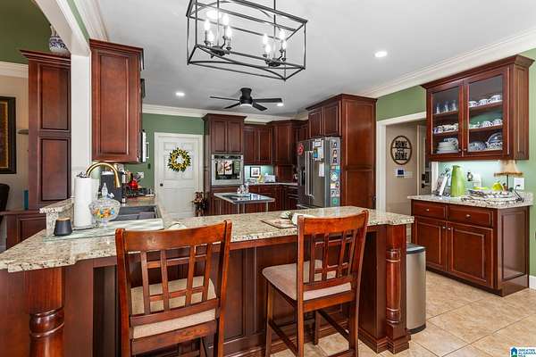 A Fabulous & Stately Estate that offers premiere living at its finest that is situated on 4 acres with a private iron entrance. Featuring a family room w/fireplace, dining room, open foyer, gourmet kitchen w/breakfast/area/bar, 3 master suites, 3 full baths & 3 half baths, bonus room, laundry room, and a 7 car garage. Amenities are endless and include brick exterior, hardwood floors, dimensional ceilings, barrel ceiling, built-ins, crown molding, French doors, butlers pantry, garden tub, tile shower, custom walk-in closets, granite countertops, chandeliers, split bedroom floor plan, ceramic tile, mud sink and so many more custom features. This picture perfect setting offers an in-ground saltwater pool w/waterfall, outdoor kitchen with a large covered pavilion, rock fireplace and a gazebo. A detached game room is an added bonus. A 60' x 70' workshop which includes a 20' wrap cover for all your big boy toys. Family outings never looked so good. Call today for your private tour!!!