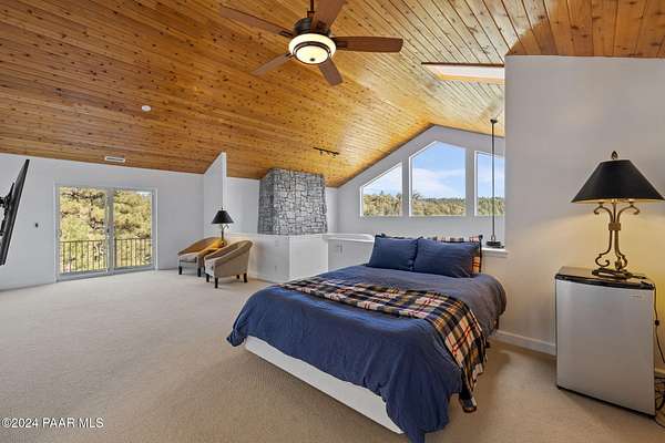 Escape to this serene hilltop home with breathtaking views and abundant wildlife. Enjoy the wraparound covered decks and step inside to soaring vaulted ceilings, a floor-to-ceiling fireplace, and walls of windows. The main floor features a luxurious Master Suite with a walk-in closet, garden tub, and private deck. The open kitchen with an island flows into the spacious Great Room, perfect for entertaining. Upstairs, a loft offers a second Master Suite, cozy living area, and private deck with unmatched views. The ground floor boasts a self-contained living space with its own kitchenette, garage access, and private entry, offering endless possibilities. Experience the perfect blend of comfort and nature in this one-of-a-kind retreat!