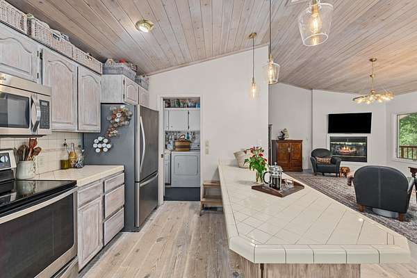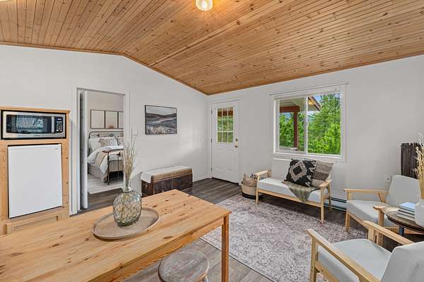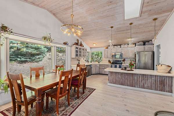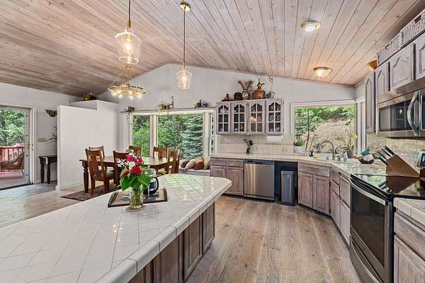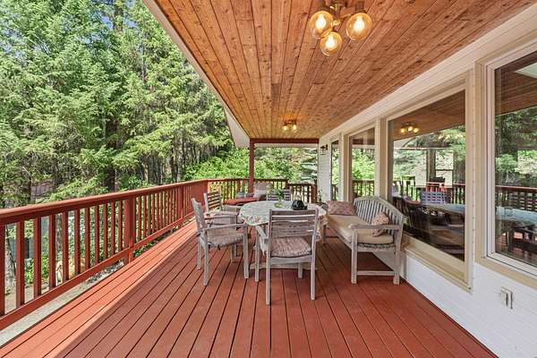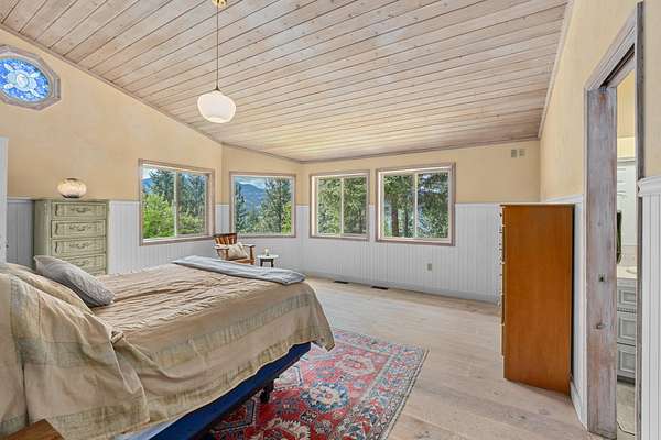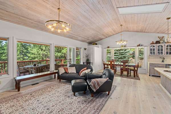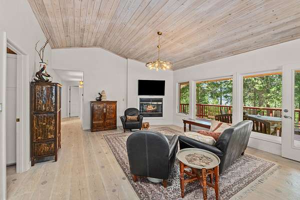 Escape to your private retreat with stunning Lake Roosevelt views and the possibility of assuming the 2.5% loan (ask about the terms)! This pristine 4.3-acre property features a beautifully updated 2-bedroom, 3-bath main home and a separate 1-bedroom, 1-bath guesthouse, offering flexibility for visitors or rental income. The upper level is a showstopper, featuring new, custom flooring made from locally sourced blue pine. The bright, Scandinavian finish on this character-rich wood enhances the natural light and complements the stunning lake views, creating a seamless connection to the outdoors. The bright, walk-out basement features new LVP flooring and is anchored by a new, EPA-compliant wood stove with a baking oven, ensuring a cozy and efficient home all winter long.