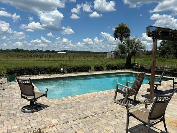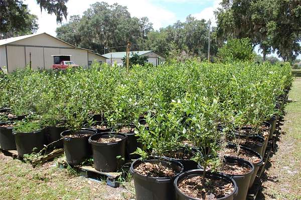 CERTIFIED ORGANIC BLUEBERRY FARM - Welcome to the farm life. This amazing property, located in Lochloosa Farms, is a five-acre parcel, (10 acres with 5 acres to be split by survey) is an active Blueberry Farm with over eight varieties of berries. Beautiful three-bedroom, two-bath home with approximately 2,268 sq. ft., including an in-ground pool. From the patio area, you can drink your morning coffee and watch the sunrises, the wildlife, with views of the blueberry field. This property is beautifully landscaped and has wood fencing. Property includes a Packing house - 4,988 sq. ft., two dock heights with receiving doors, w/dock plates, sealer pad, and light. Back dock is 424 sq. ft. open with one dock plate; the back of the enclosed area has one garage door. Inside is equipped with an icyene installation, two air conditioners, in the packing area, and two refrigerated units in the cooler room. There is a small office, storage, and two bathrooms, all on a deep well and septic. Including a 4,800 sq. ft. storage barn/office with a metal roof with kitchen, sink, and bathroom area. For more storage, there is an older barn with a shop area with cement slab floors, closed in w/garage door (4) and one main door which is 36" for a total of 2,264 sq. ft. Gas storage area with a 250-gallon tank with a 9 x 7 tin roof over next to a 16 x 16 closed in barn. This barn has concrete floors and a water softener. One of the areas has been converted into a one-bedroom, one-bath apartment. The organic certificate is transferable. The equipment list is available. An additional 34 +/- acres available. Call for a showing of this piece of heaven in the Country.