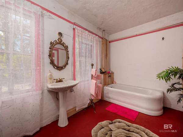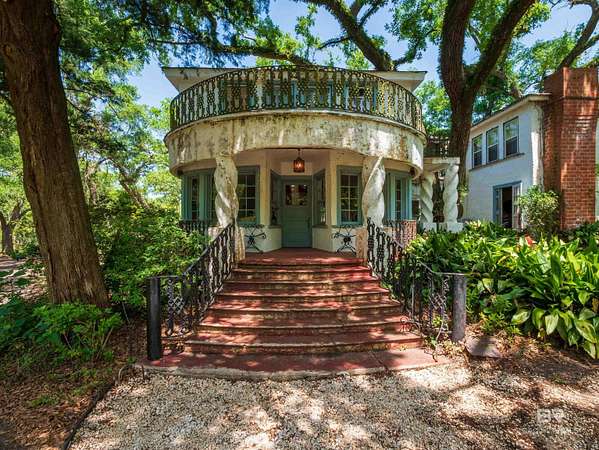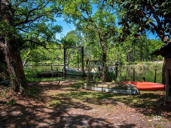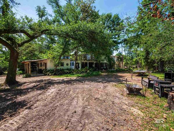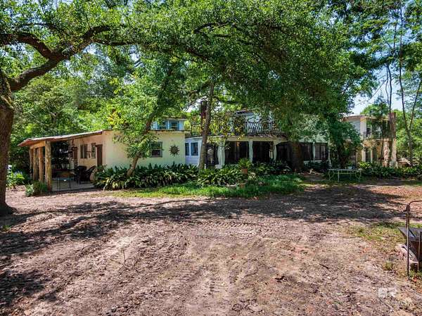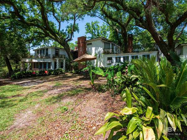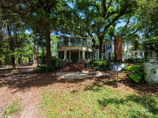 Don't miss this LANDMARK waterfront property that is being brought to market. A mere minutes to the beautiful beaches of the Alabama Gulf Coast, this extraordinary piece of poured concrete architecture was started in 1901 and not completed until 1906. The property consists of two parcels totaling 1.7 +/- acres and 264 +/- of waterfront on Brights Creek, which is just off of the Bon Secour River, a place the locals know is fitting for the meaning of the name “safe harbor”. The 4,039 +/- sqft home consists of two connected structures with a second story breezeway that includes 6 bedrooms, 3 baths, 6 fireplaces and a wood stove. The main house’s grand entrance boasts original iron railings and concrete formed steps opening up to a large living area with a wood burning fireplace and stunning spiral staircase ascending to the second story. There is a storm/root cellar located under the kitchen floor. Dripping in moss-covered oak trees, the landscape slopes gently towards the boat docks located along Bright's Creek. The potential and opportunity this property exudes is endless if you have vision and a love of history. You won’t want to miss seeing this gem and making it your own! Buyer to verify all information during due diligence.