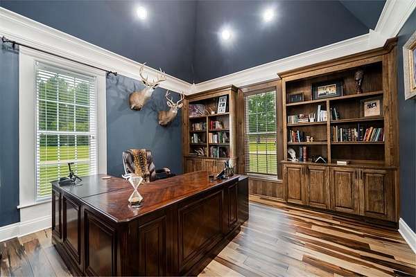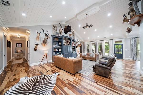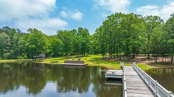 Welcome to your luxury estate nestled on 35.69 acres of pristine land in the heart of East Texas. The property is just minutes from the LA Border. This property offers a large 5 acre stocked lake with tons of different types of fish, amazing oak trees, and a custom built gazebo, here you will also find the ultimate in exceptional living that is surrounded by peace and tranquility. The home boasts a parlor room, four spacious bedrooms, floor to ceiling windows overlooking the beautiful lake, 10 ft flat, 11 ft flat, and a 21 ft vaulted ceiling. Barrell ceilings grace the entry and the primary bath. The kitchen is a Chef's dream with double islands, leathered marble countertops, custom glass inlays, dovetail drawers, imported hardware and much more. Also the kitchen has Thermador appliances, ample storage, and a large butler's pantry with marble backsplash and solid wood custom built cabinets. Brazilian hardwood floors give this home the luxury feel you have been looking for. Pair all of this with the restoration hardware fixtures, all custom wood moldings and you have a true luxury home. As you approach this property, you will be immediately struck by the beauty of the custom hand carved granite lion heads accented along the nine foot to 14 foot brick roman style wall surrounding the solid iron custom gate. The English bond, flemish bond, and herringbone patterns make this entry wall simply breathtaking. It is truly a work of art. The gated entry creates an impressive atmosphere that sets the tone for the rest of the property while feeling like you're the only people within miles of the place. There is also a bridge that spans across the 5 acre lake that was the original railing restored from the historic Logansport bridge that connected Texas and Louisiana. There is also a large deck by the lake for sunbathing while everyone else is trying to catch their fish of the day! Do not miss your chance to own your own private retreat for you and your family!