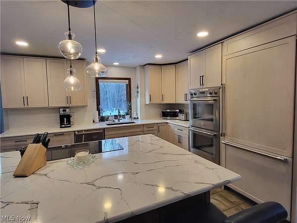 Gorgeous Stately Colonial on 3.28 Acres Nestled in a serene wooded cul-de-sac, this elegant colonial offers 3.28 acres of privacy and natural beauty. Expansive windows fill the home with natural light and provide stunning, ever-changing seasonal views. The open-concept chef?s kitchen boasts Silestone countertops, an oversized island with induction cooktop, Thermador appliances, and is perfect for entertaining. Step outside to an expansive patio and in-ground pool with slide and diving board for endless social and family fun. Inside, oversized bedrooms and updated full bathrooms highlight the second floor, complemented by a soaring two-story foyer. Custom Pella casement windows, a $100,000 investment new in 2023, enhance energy efficiency and bring the outdoors in. Brazilian walnut floors add warmth and sophistication. Recent upgrades include a 2015 roof, 2021 Lennox furnace, 2022 hardwood floors, 2024 water tank, and 2025 Trex balcony. The pool features a new liner (2021) and upgraded filter/pump (2025), making it ready for summer enjoyment. Located just minutes from major highways, parks, and top-ranked Highland Local Schools, this move-in-ready home offers the perfect blend of privacy, luxury, and convenience.