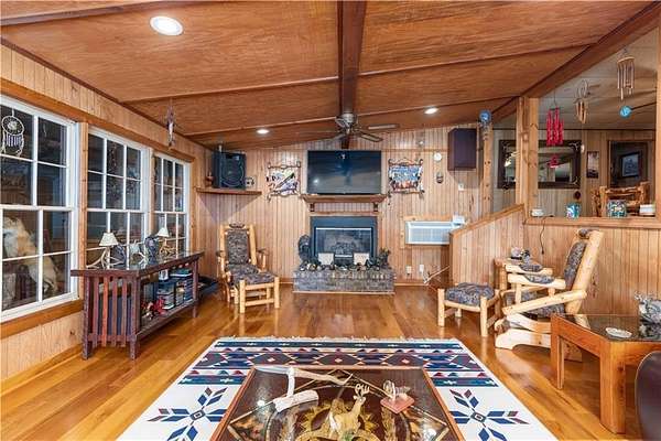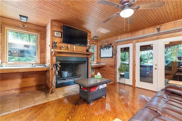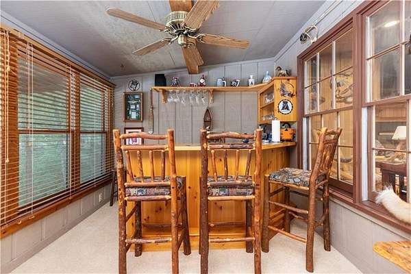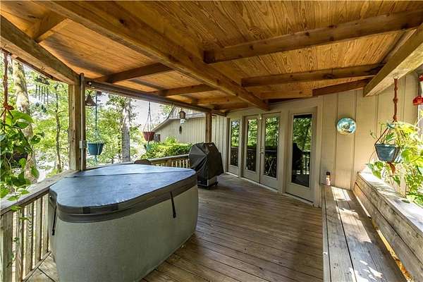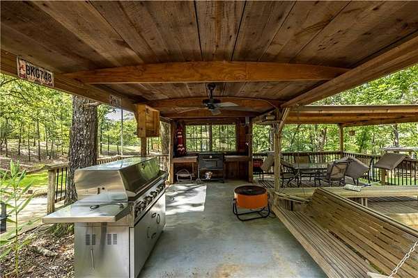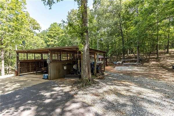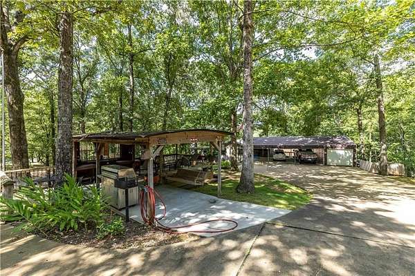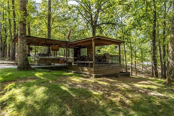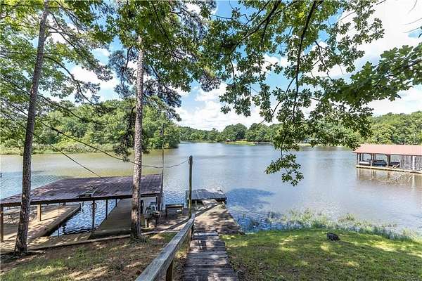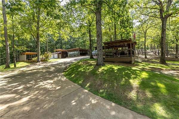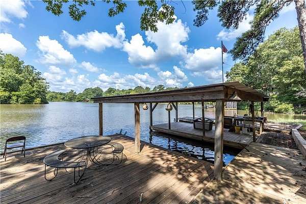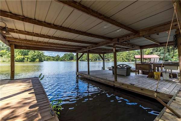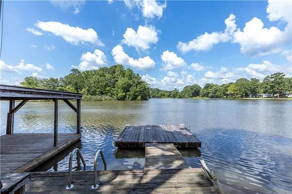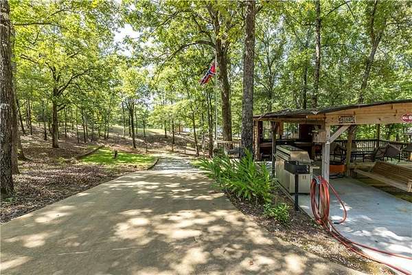 Welcome to Lake Harding! This once mobile-home has transformed into an expansive Cabin on the Lake! The C&G Leased Lot features nearly 2 acres of rolling hills with almost too many features to list! This remote, private property is perfect for a weekend getaway and has great access to all of Lake Harding! The lake home has had just one owner for nearly 40 years and it was a passion project, to say the least! It started with just simple, humble beginnings as a single-wide mobile-home but now encompasses so much more! The home has a den, living room, master suite with balcony, guest bedroom, an office, kitchen, one indoor full bath, one exterior access full bath, sun room overlooking the river, several decks, a patio, a grilling cabana, multiple carports, a two-car detached garage, RV/Camper covered parking, Boat covered parking, large concrete driveway, a walking path and driving path down to the lake, a dock on the water, a covered single boat slip, and a sun deck. This really is a must see in person! Reach out to schedule your showing today!