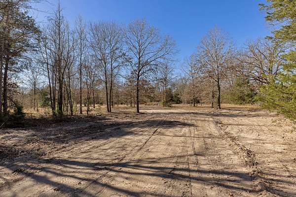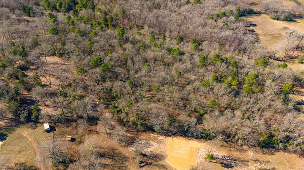In the Piney Woods of Scroggins, TX just east of Dallas. Discover 20.7 acres of beautiful wooded land with electric and water already on the property, making it ready for your plans. A 50x50 dirt pad is in place, perfect for a cabin, shop or future home site. Located just minutes from Lake Bob Sandlin and Lake