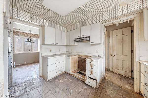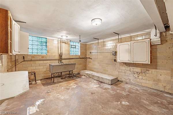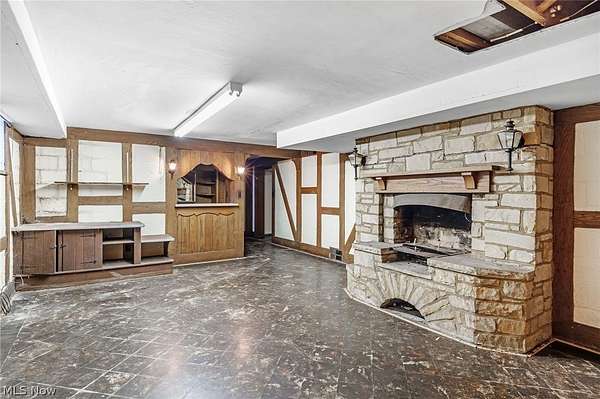 Investor special and rare value-add opportunity in South Euclid. This fixer-upper is not your average rehab - a stately English Tudor brick home with 5 bedrooms and 3.5 baths on nearly 2 acres, offering over 3,200 square feet plus a 1,300 square foot basement. A cash buyer, rehab investor, or owner-occupant ready to build serious sweat equity on a one-of-a-kind estate will immediately recognize the potential. One bedroom sits off the kitchen on the main level, with four additional bedrooms upstairs across two wings, each pair connected by a Jack-and-Jill bathroom. There are three fireplaces located in the basement, main level, and primary bedroom. The home features an original cherry wood-paneled library, hardwood floors throughout with many rooms salvageable, a grand spiral staircase, formal dining room, and classic Tudor details that would be difficult to replicate at today's construction costs. In a neighborhood where most homes top out well under 2,000 square feet, the sheer scale and character of this property put it in a category of its own. Opportunities like this - true estate-sized homes on acreage in this area - simply do not come available often. Full transparency on condition: the kitchen, first floor bedroom, kitchen dinning area and adjacent bathroom sustained significant water damage and require renovation. Some hardwood flooring will need replacement, and the driveway will require repair or replacement. The property includes a two-car garage, stunning hilltop setting, and a price point that leaves meaningful room to create equity and restore something exceptional. Home is being sold strictly as-is. Buyer to verify all information and conduct due diligence prior to closing.