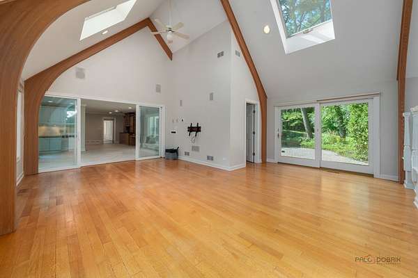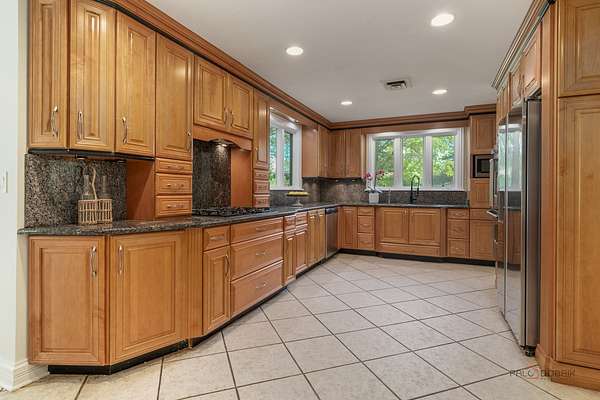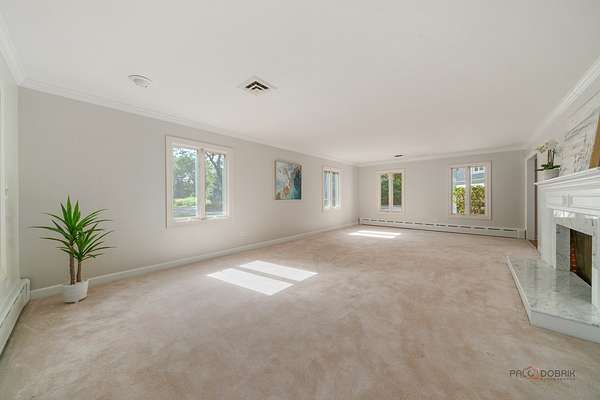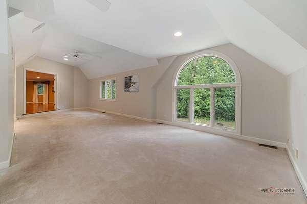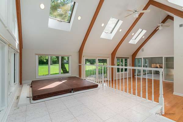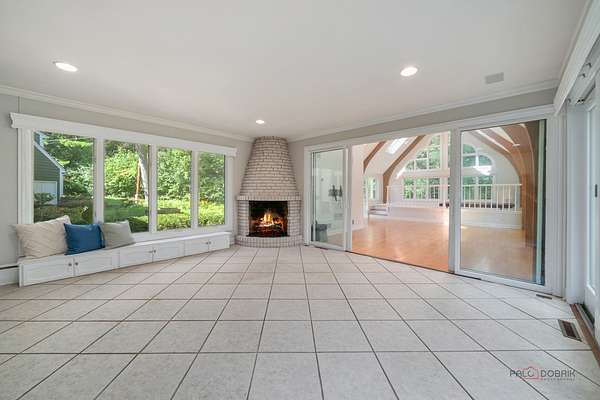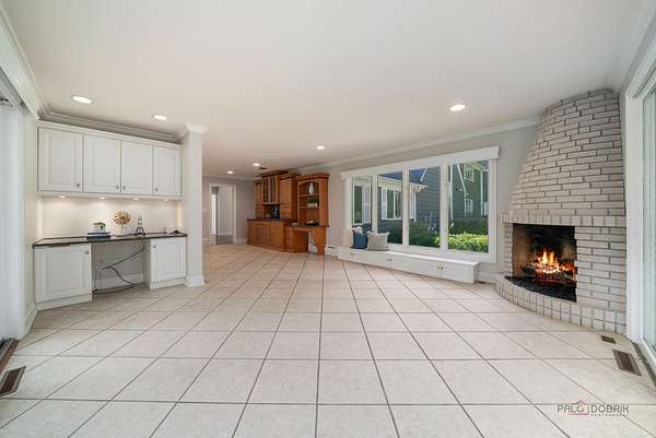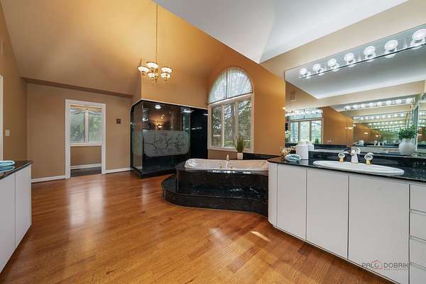 Nestled on over two acres of lush, beautifully landscaped grounds, this stunning 5-bedroom, four of which have an ensuite, 6.2 bath estate offers the perfect blend of elegance, space, and versatility. Thoughtfully updated with fresh neutral paint and stylish new light fixtures, the home boasts 3 fireplaces, a heated 4.5-car garage, and countless special features throughout. The main level showcases a grand family room with cathedral ceilings, skylights, and an indoor hot tub with a full bath, an elegant living room with fireplace, and a spacious dining room adjacent to the kitchen. The gourmet kitchen is a chef's dream, complete with stainless steel appliances, endless cabinet and counter space, and a bright eating area with access to the outdoors. Two main floor en-suite bedrooms, each with a private bath, provide comfort and flexibility. Upstairs, the expansive master suite is a true retreat, featuring two walk-in closets, a sitting area with coffee bar, and a luxurious bath with soaking tub, double vanities, and a walk-in shower. Two additional bedrooms and two full baths complete the upper level. The finished basement offers even more living space with a cozy recreation room with fireplace, half bath, bar, and second laundry room. Additional highlights include a loft with panoramic views, vaulted ceilings, zoned heating and cooling, and two patios designed for entertaining. With multiple outdoor spaces, a sprawling yard, and a serene setting, this estate is a rare find. All this in a prime location close to shopping, restaurants, and more-come experience everything this extraordinary home has to offer!