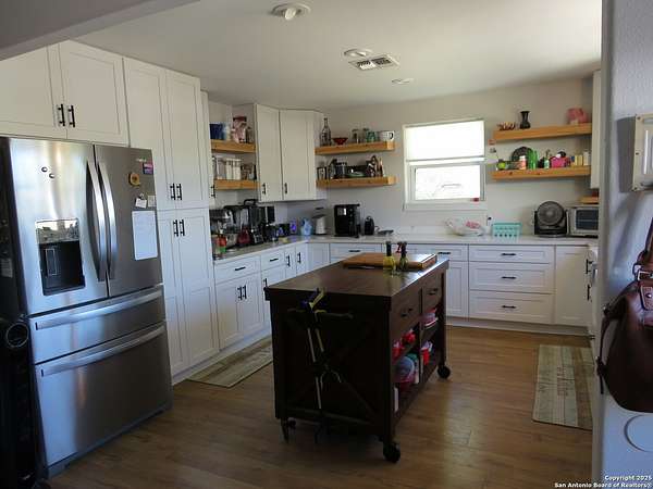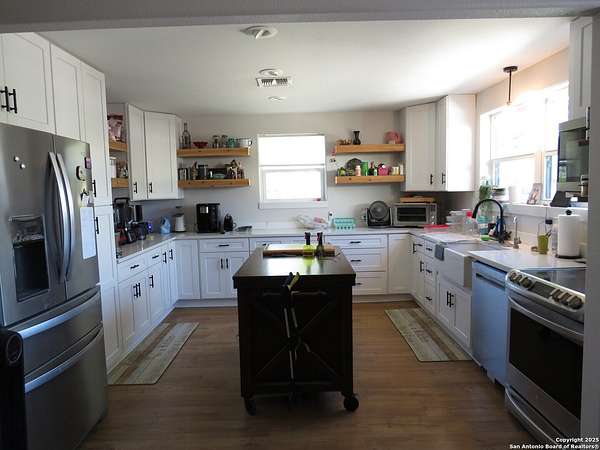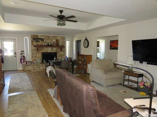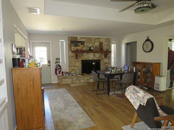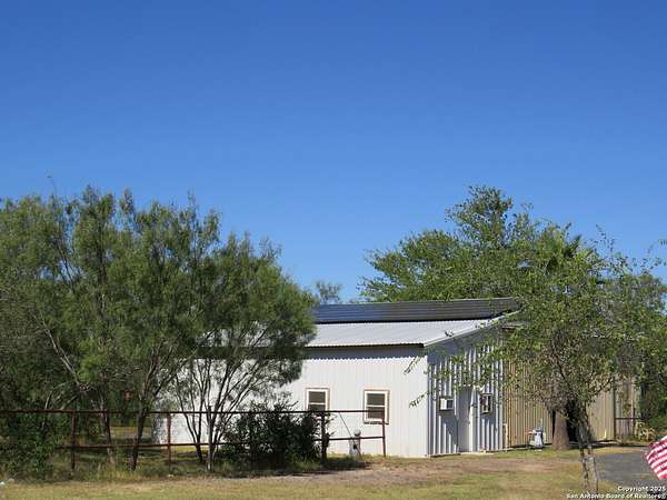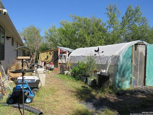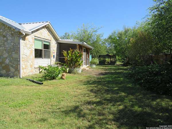 Updated 3-bedroom, 2-bath home in Uvalde offering modern comfort, energy efficiency, and exceptional outdoor amenities. Fully renovated in 2020, this home features new PEX plumbing, electrical, UV-efficient windows, laminate flooring (tile in baths), and updated kitchen with 2020 appliances - all included. The spacious living area is warmed by a propane fireplace insert, and the home runs on a 2020 heat pump/AC system serviced annually. Additional efficiency upgrades include a tankless water heater with on-demand remote and a water filtration system at the kitchen sink. Energy & Utility Features: * Solar system (installed 9/2022) covering approx. - output available upon request * Whole-house generator (installed 10/2023) * High-speed internet + hardwired network lines & wireless bridge to barn * Public water & sewer, AEP electric Property & Exterior Amenities: * Barn with newly added shop space, air compressor lines & 3 RV hookups (water & electric), sewer dump at carport * Greenhouse, raised garden beds, chicken coop (2024), walking trail behind barn * Peach, pomegranate, and apple trees plus beautiful native landscaping * New privacy fencing and perimeter fencing (within last 2 years) * Gazebo and insulated storage room * Foundation jacks added April 2022 - transferable 5-year warranty This home offers the perfect blend of in-town conveniences and property freedom, with everything in place for comfort, preparedness, gardening, and hobby projects. Truly move-in ready with modern systems and thoughtful upgrades throughout.