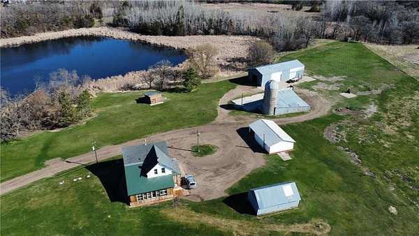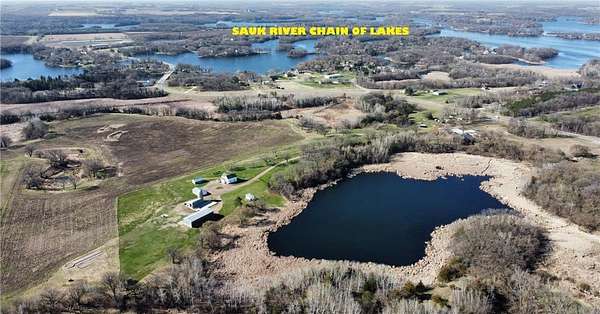Tucked away on 7.5 picturesque acres overlooking a peaceful pond, this property offers privacy, character, and proximity convenience. Situated across from Lions Park, which offers a picnic shelter, playground area, green space and a public swimming beach. The property truly shines outdoors with an impressive array of outbuildings: a 40x24 three-stall garage, 74x30 pole shed, 30x16 tool shed, and a charming log playhouse or storage shed. This quality built 1920s home boasts original craftsmanship and woodwork with timeless appeal. The main level features an abundance of natural light, a spacious kitchen and dining area, a large living room with hardwood floors, and a cozy family/sitting room. You’ll also find a convenient laundry area with a bright sunroom, full bathroom, and a main-floor bedroom. Upstairs offers three additional bedrooms and a generously sized bathroom. For comfort and convenience, each bedroom and the living room are equipped with individual ductless mini-split systems for heating and cooling needs. There is also a wood stove for supplemental heating. Recent improvements provide peace of mind, including a brand new drilled well (August 2025), new 200-amp electrical panel, and a new septic system installed in 2023. If you enjoy boating or fishing, this property is approximately 2 miles from the public boat launch to the Sauk River Chain of Lakes consisting of 14 connecting lakes. With ample storage, shop space, and a private setting, and a convenient location, this rare opportunity is ready to welcome its next owner.