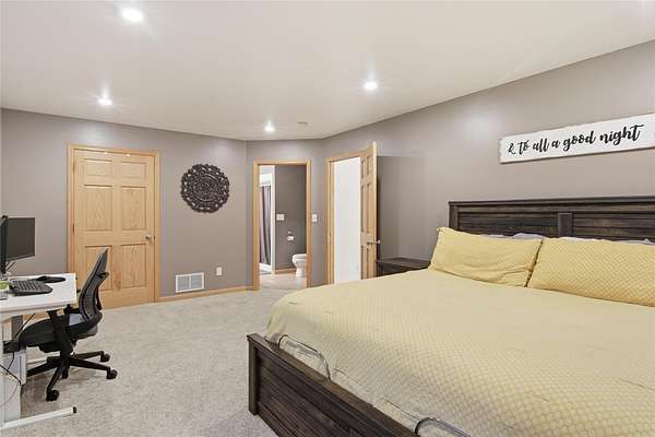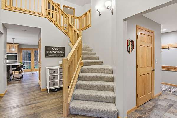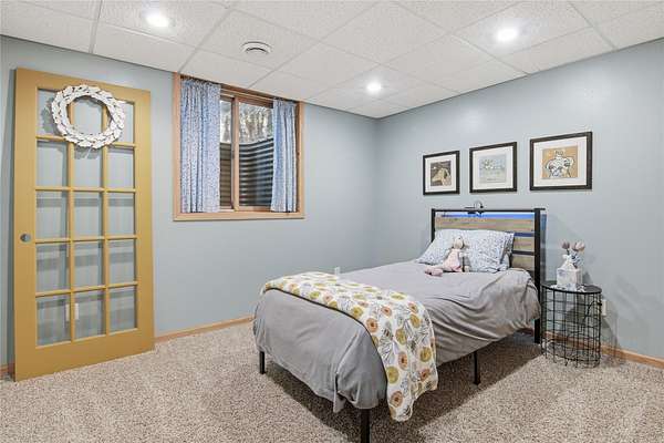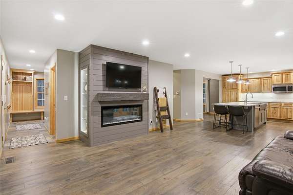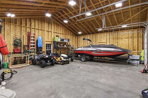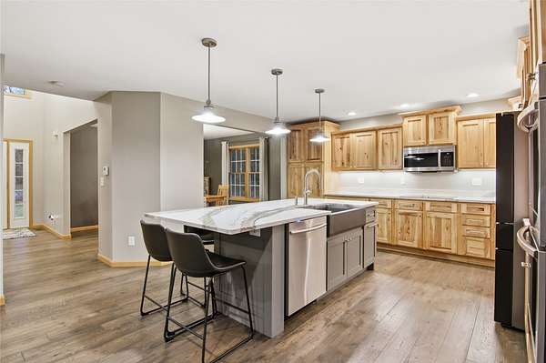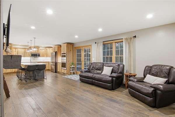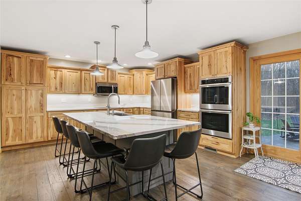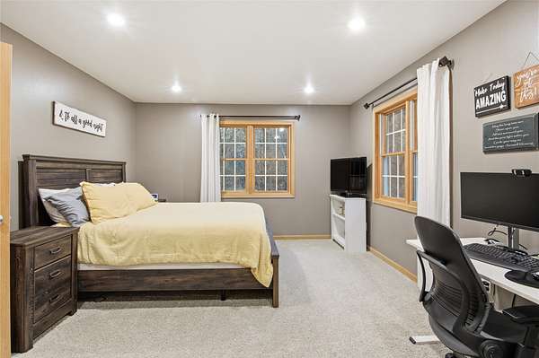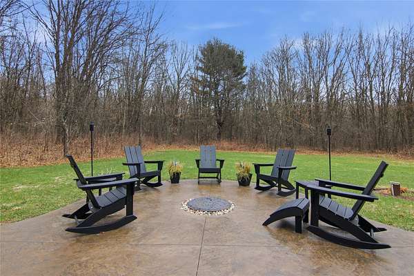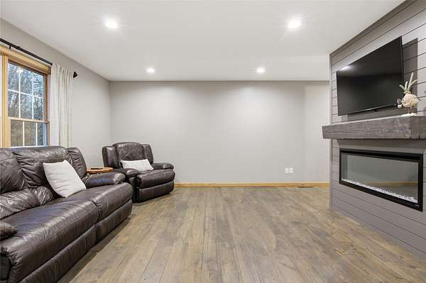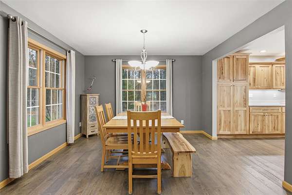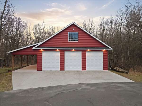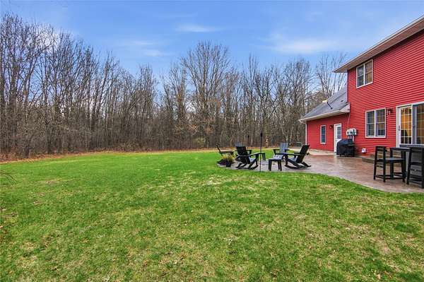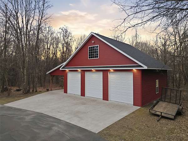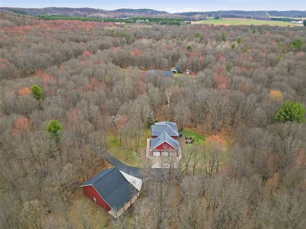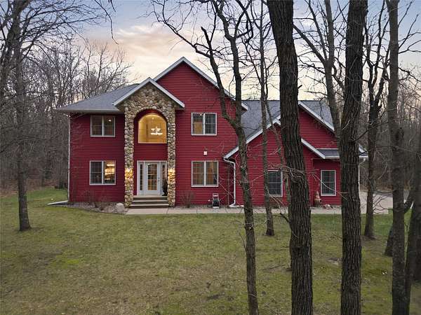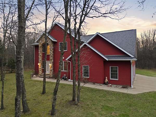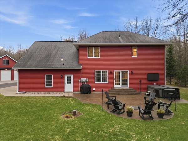 Highly desirable property just minutes east of Eau Claire! Picturesque 10-acre wooded lot provides complete privacy for beautiful 5 Bedroom, 3.5 Bath home with heated 3-car attached garage pole shed. The newly remodeled kitchen is the heart of the home, featuring gorgeous Cambria countertops, custom cabinetry, and an expansive island ideal for entertaining or gathering with family. A formal dining room provides an elegant setting for hosting memorable occasions. The spacious primary suite is a true retreat, complete with a generous walk-in closet and ensuite bath. The thoughtfully finished lower level offers a comfortable and versatile living space, including a large family room with bar, guest bedroom, and a full bath-all enhanced by in-floor heating for year-round comfort. Outdoors, a newly constructed 36' x 36' outbuilding with a 12' overhang offers exceptional flexibility-great for storing a boat or recreational vehicles. Its vaulted ceiling provides ample space for an indoor basketball hoop or additional recreational use. The serene wooded surroundings of the large back yard with stamped concrete patio and fire pit are perfect for entertaining yet private enough for a hot tub(negotiable). Hurry! This ideal property won't be available for long!