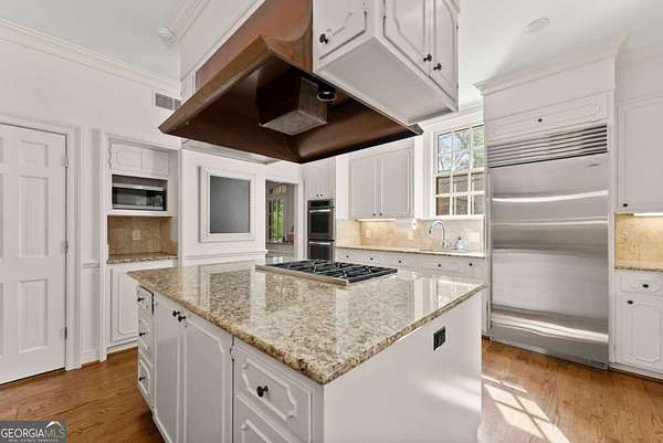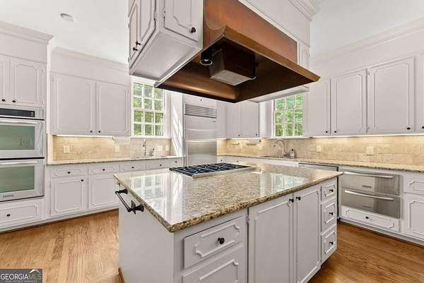 Privately tucked away on Gainesville's Riverside Drive, this exceptionally spacious, traditional home offers timeless appeal and privacy galore. Just steps from Riverside Military Academy, yet hidden from the street and city sounds by a wooded, tree-canopied drive. Set on a park-like property, the impressive all-brick residence spans nearly 11,000 square feet and includes a finished terrace level featuring a separate apartment. The overall layout offers flexibility for large households or multigenerational living, with a main-level primary suite and two en-suites upstairs. Enjoy classic architectural touches-breezeways, detailed trim work, and four fireplaces-all adding warmth and charm throughout. An inviting entertainment room above the two-car garage adds teen appeal, and the additional three-car garage provides abundant space for multiple drivers, a workshop, hobbies, and storage. The chef's kitchen is designed to serve a busy household, and multiple living areas offer room to gather or unwind, together or individually. Hardwood floors, energy-efficient features, and generous storage round out the home's practical appeal. Outdoors, enjoy wooded views, a private yard, an outdoor fireplace, and a spa-ideal for relaxing or low-key entertaining. Close to schools, shopping, hospitals, and dining, this home offers the rare combination of privacy, space, and convenience-ready to be personalized and enjoyed for years to come.